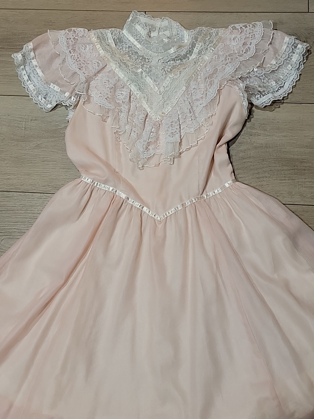 как выглядит Gunne Sax Jessica McClintock Girls Dress Size 12-14 Floral Lace Trim CC фото