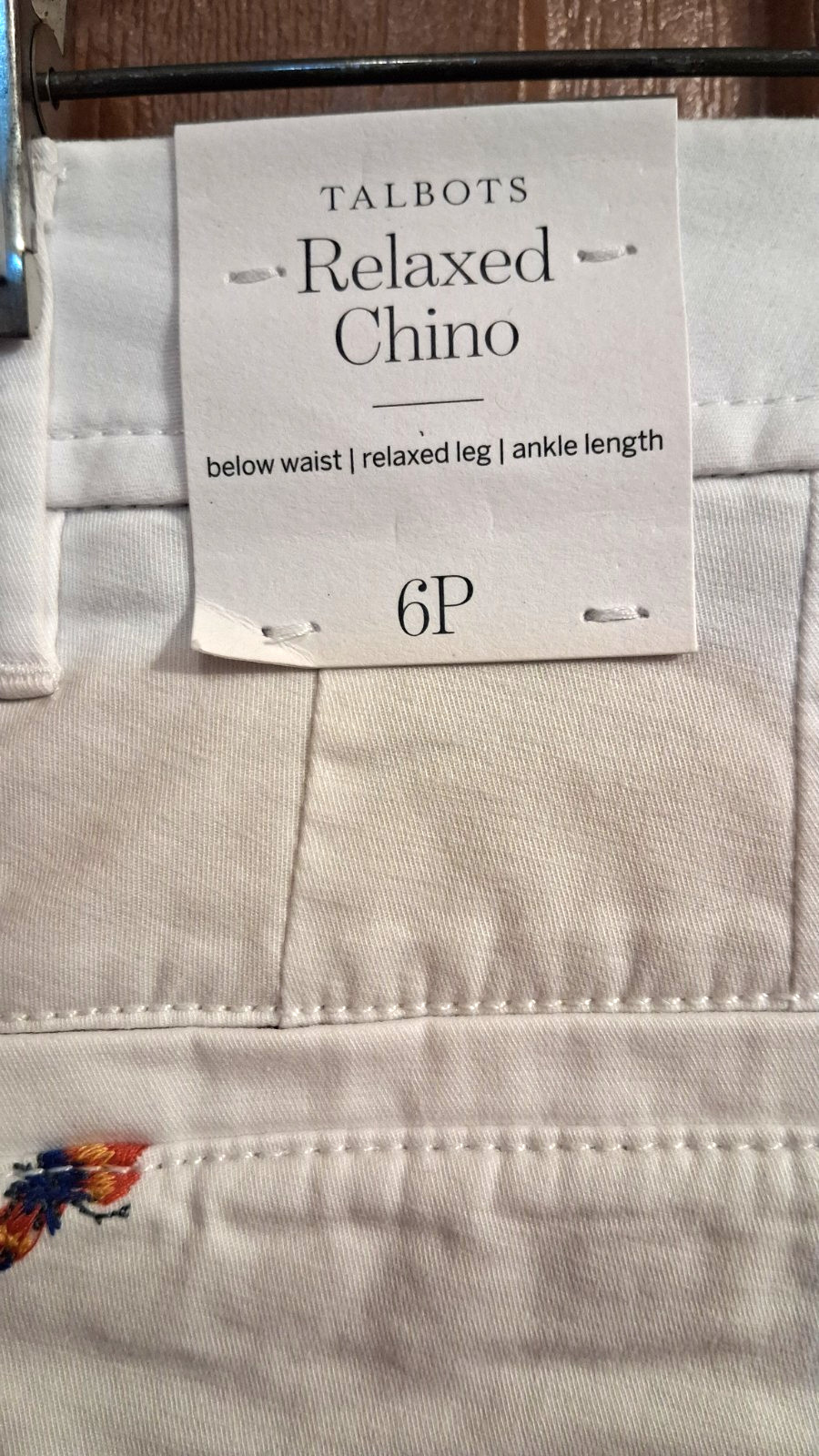 как выглядит Talbots Relaxed Chino White Below Waist Relaxed Leg Ankle Length Misses 6P NWT фото