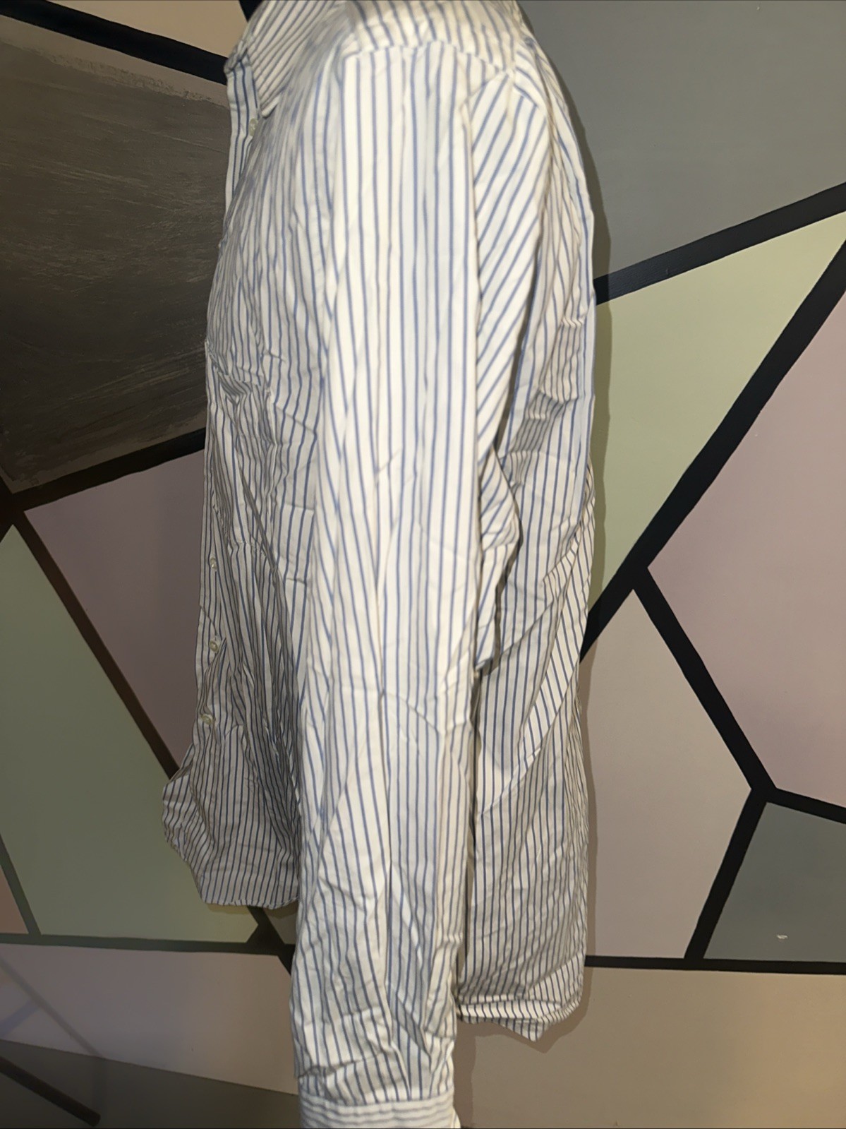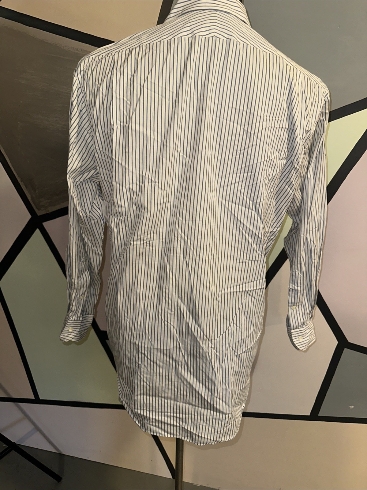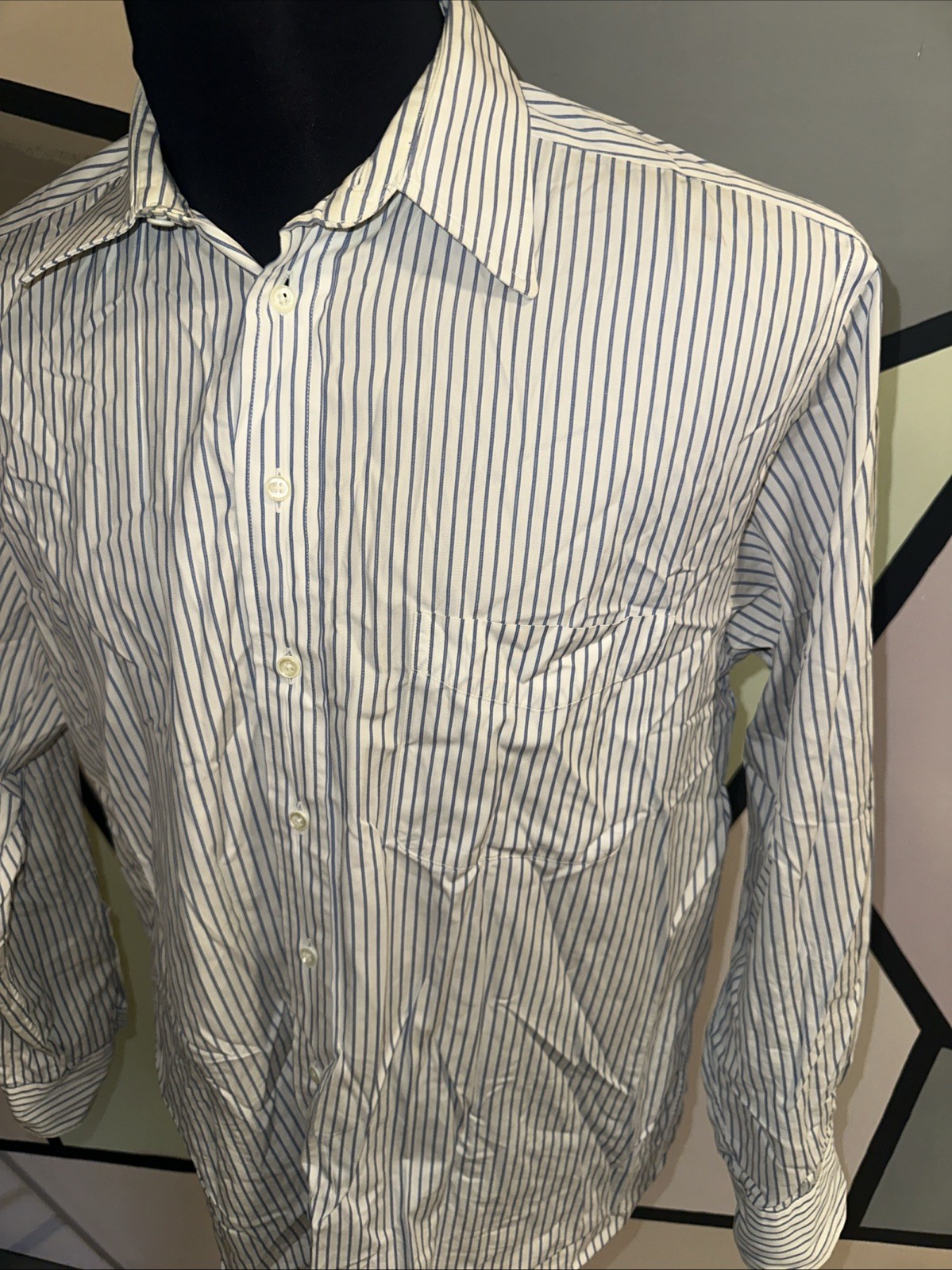 как выглядит Aquascutum Button down Dress collar Shirt long sleeve striped Blue white фото