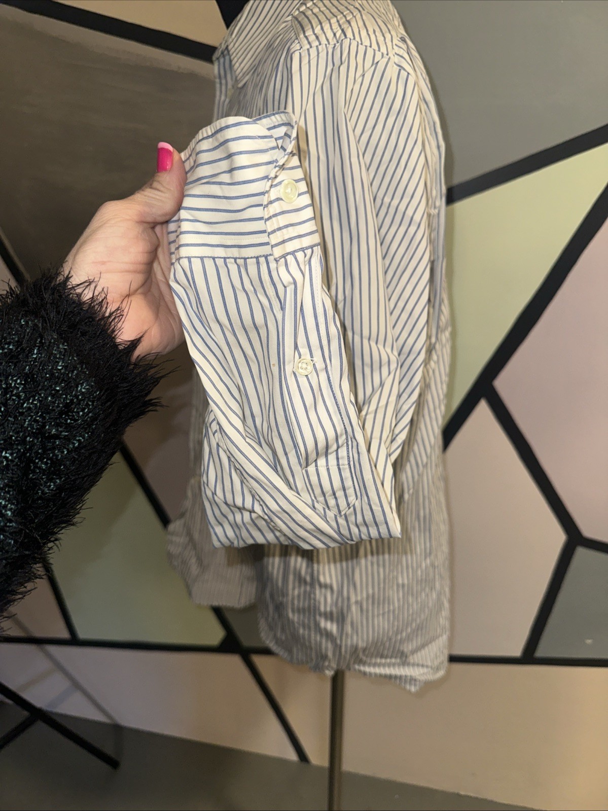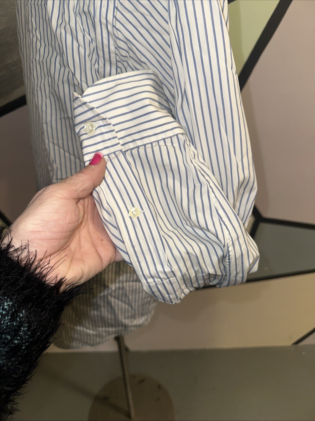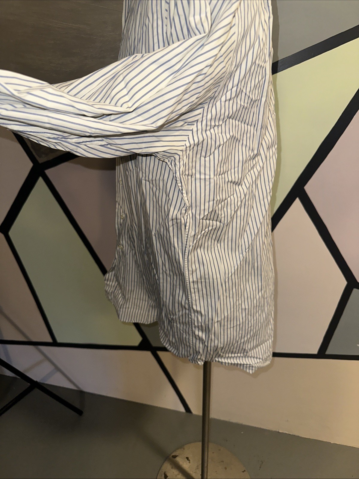 как выглядит Aquascutum Button down Dress collar Shirt long sleeve striped Blue white фото