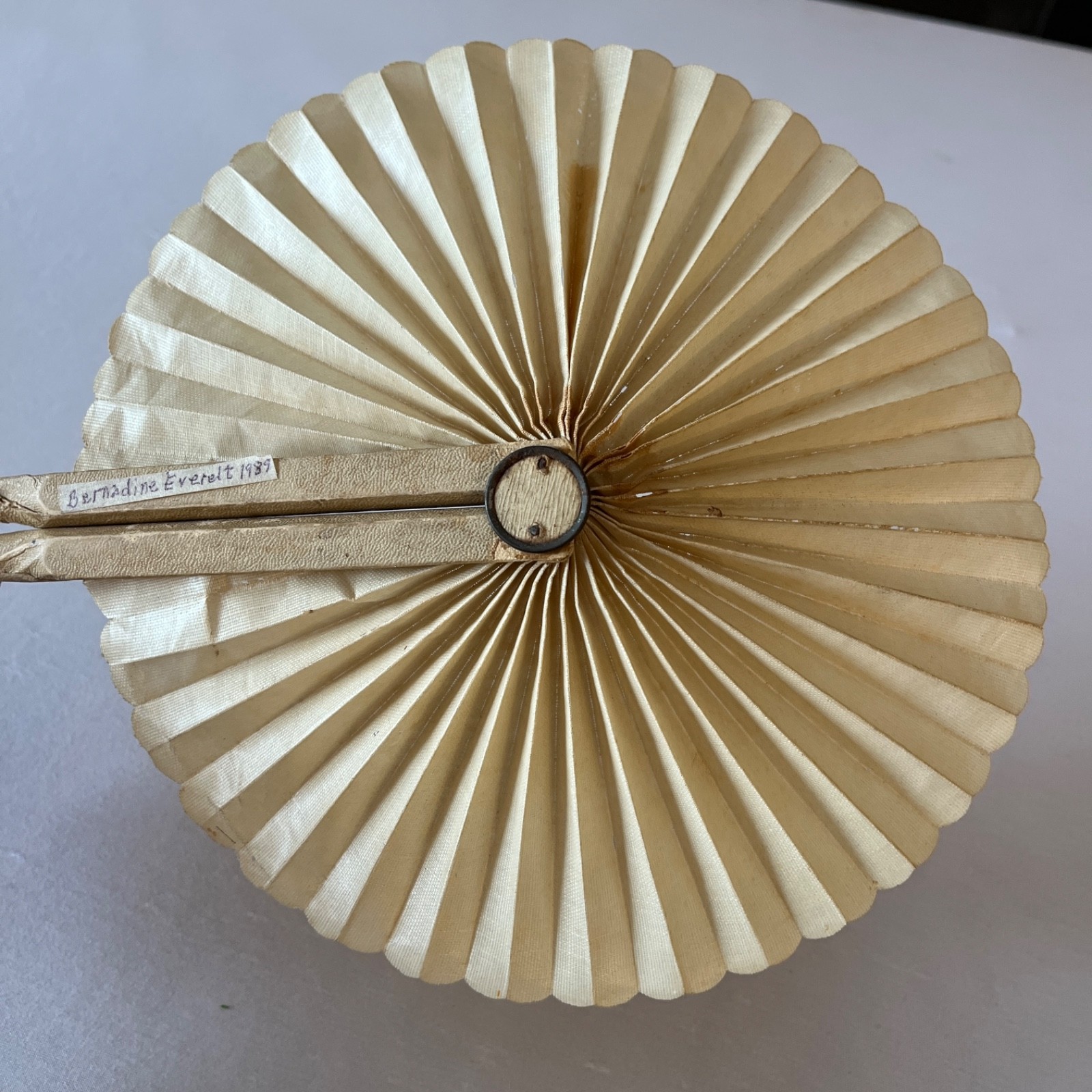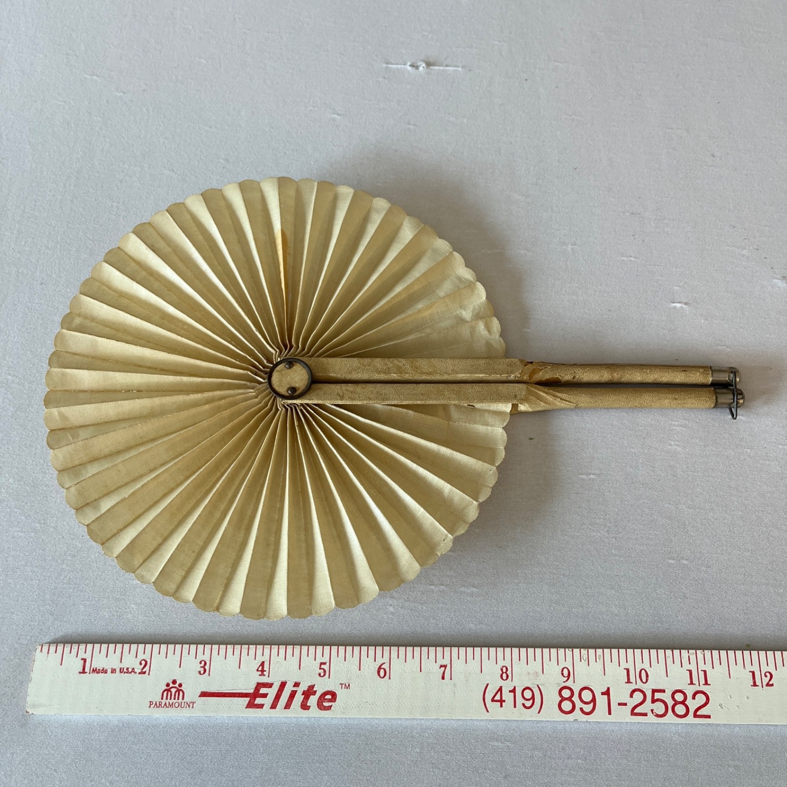 как выглядит Vintage Wood Paper Hand Fan Fold Up 1920-1930 Japan 2 sided фото