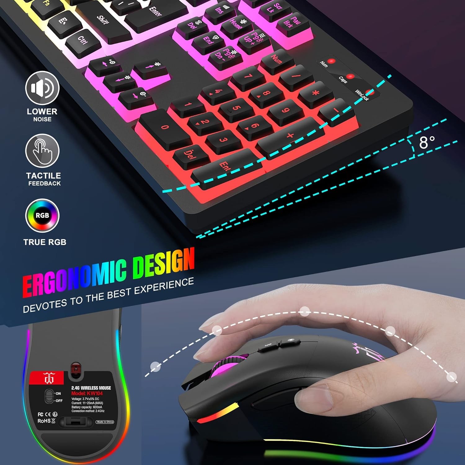 Wireless Gaming Keyboard Mouse, RGB Rechargeable Pudding Keycaps Anti-ghosting