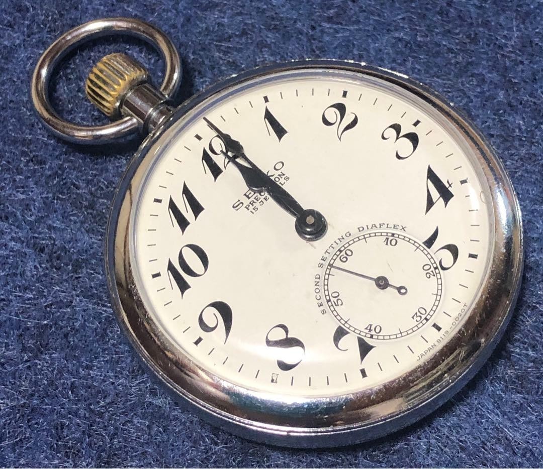 19 Seiko Precision Vintage Pocket Watch Manual 15 Jewels Open Face Railway Rare