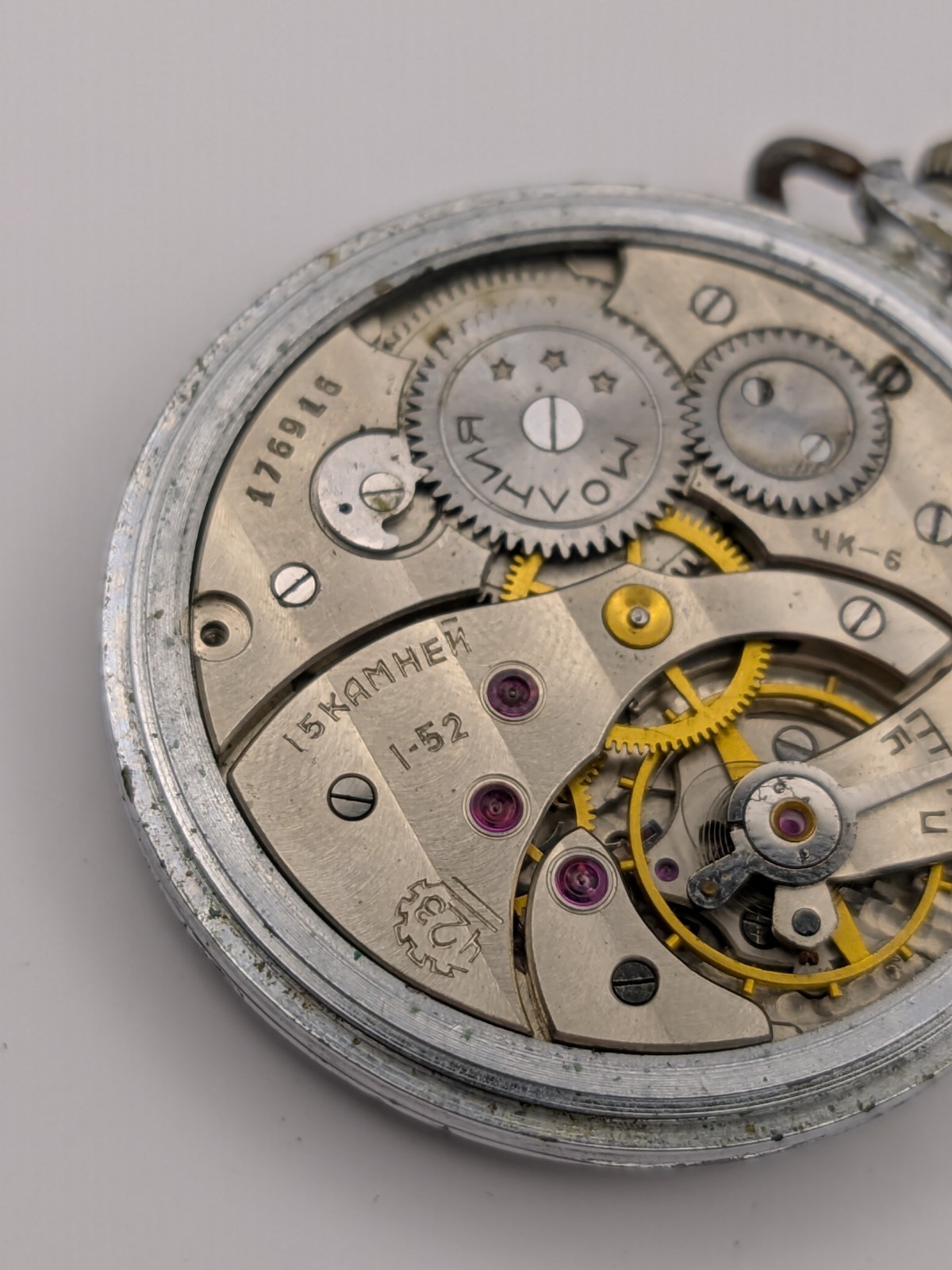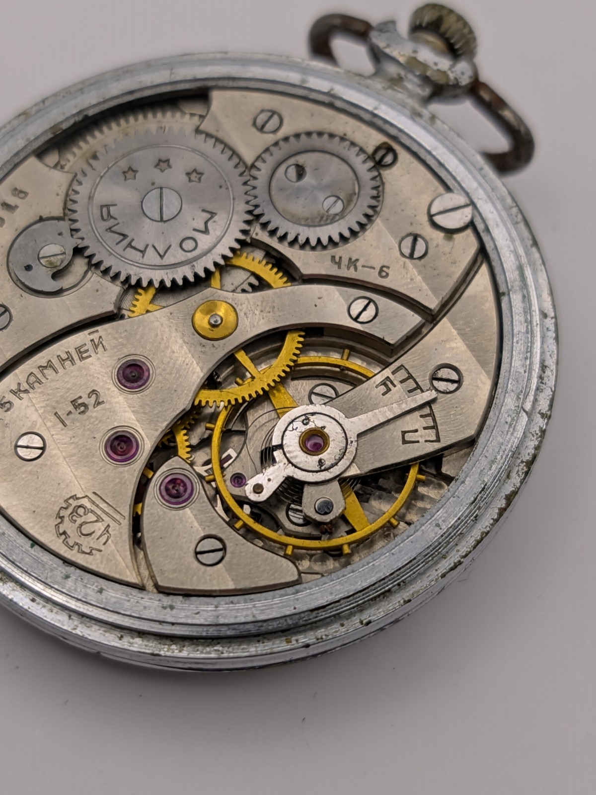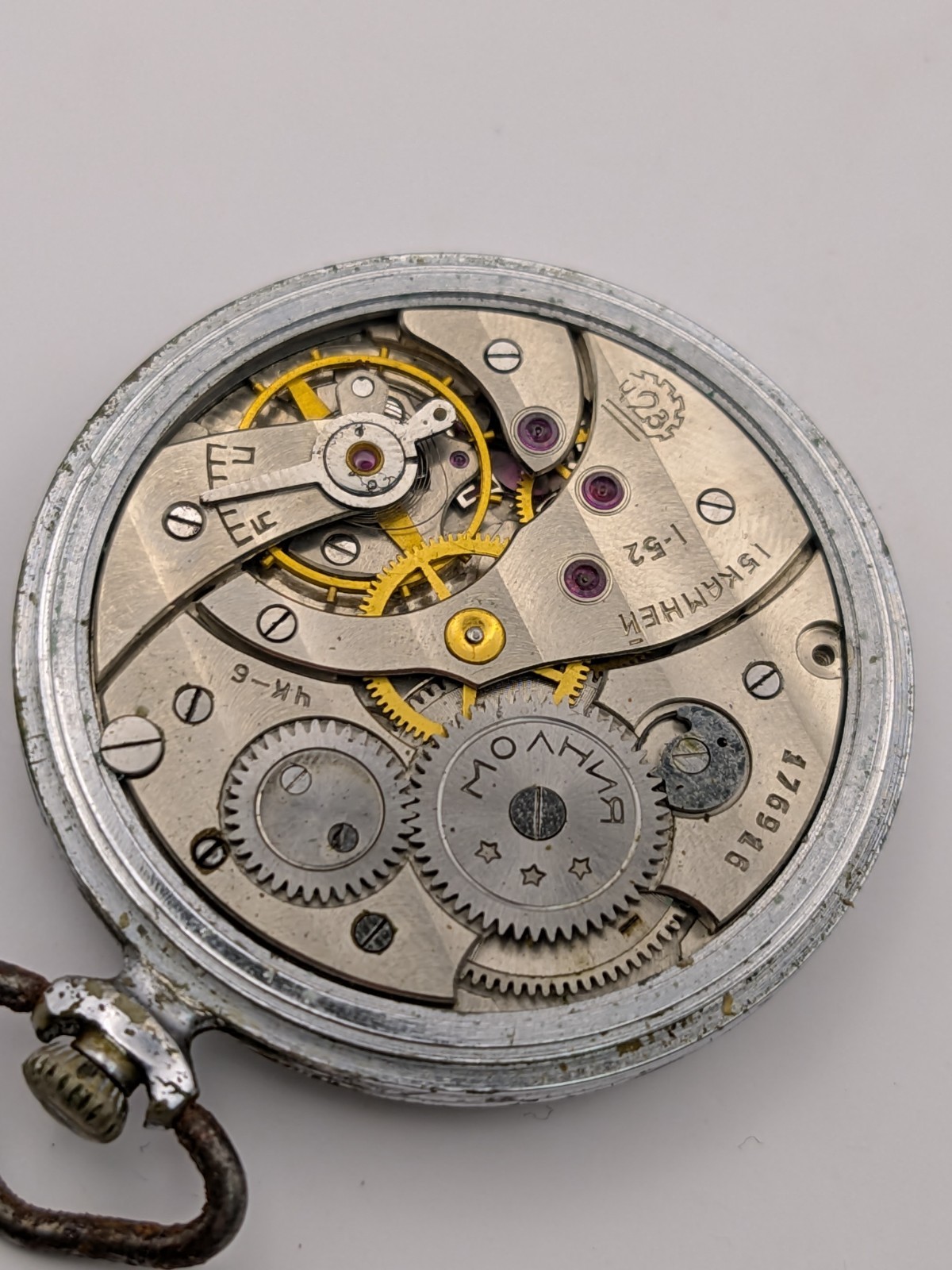 Vintage Pocket Watch Molnija 3602 ChK-6 Soviet USSR For Parts Or Repair