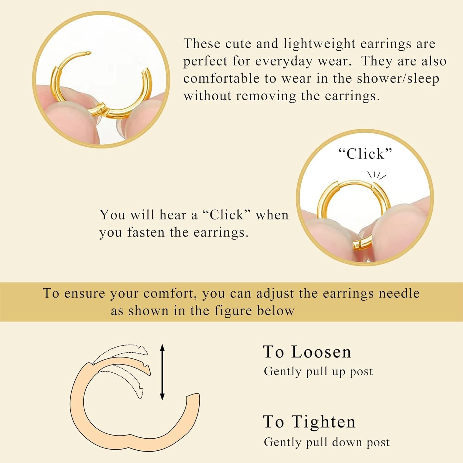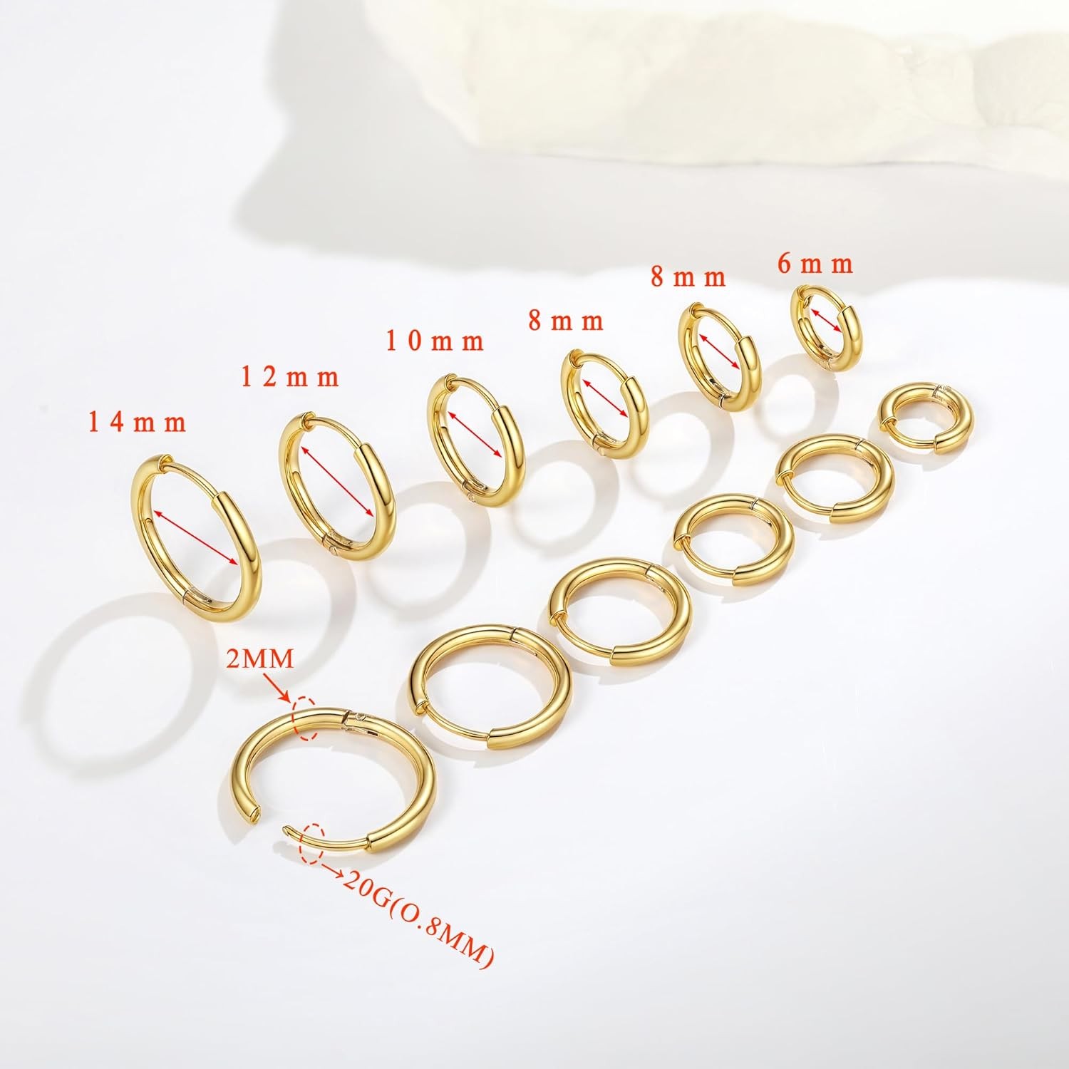 6 Pairs Small Gold Huggie Hoop Earrings Set for Women, 14K Gold Plated Lightweig