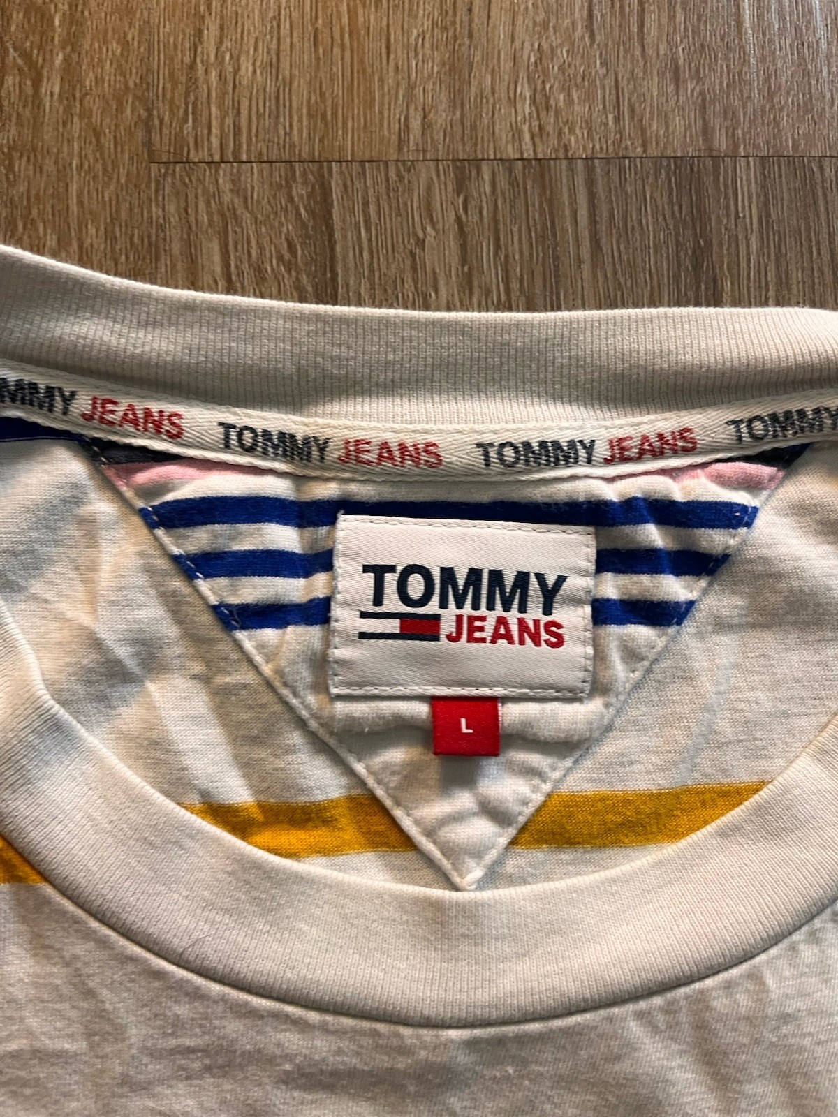 как выглядит Vintage Y2K 90s Tommy Hilfiger Striped Polo Shirt Large фото