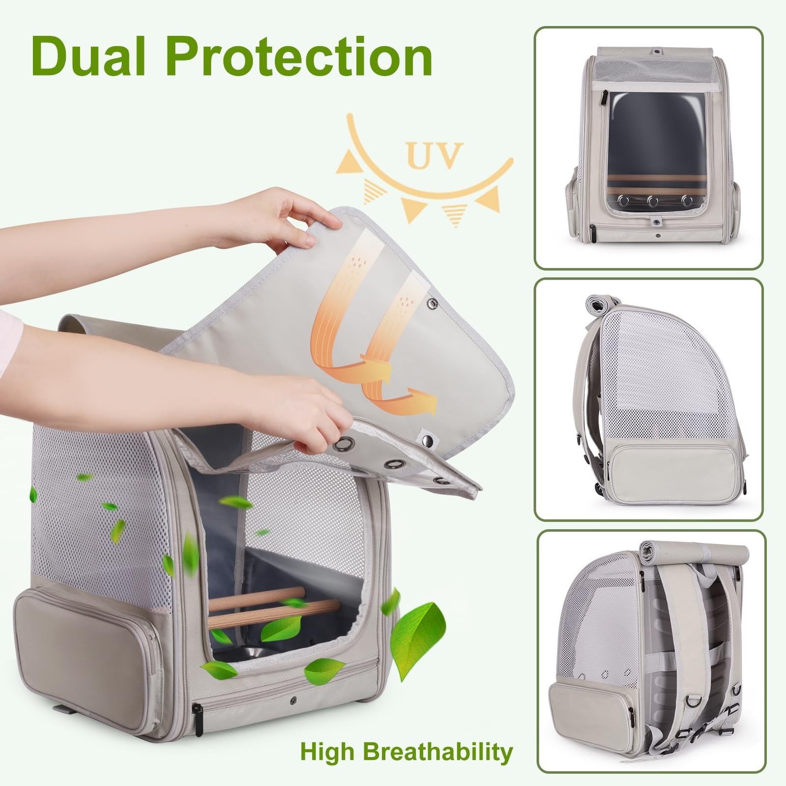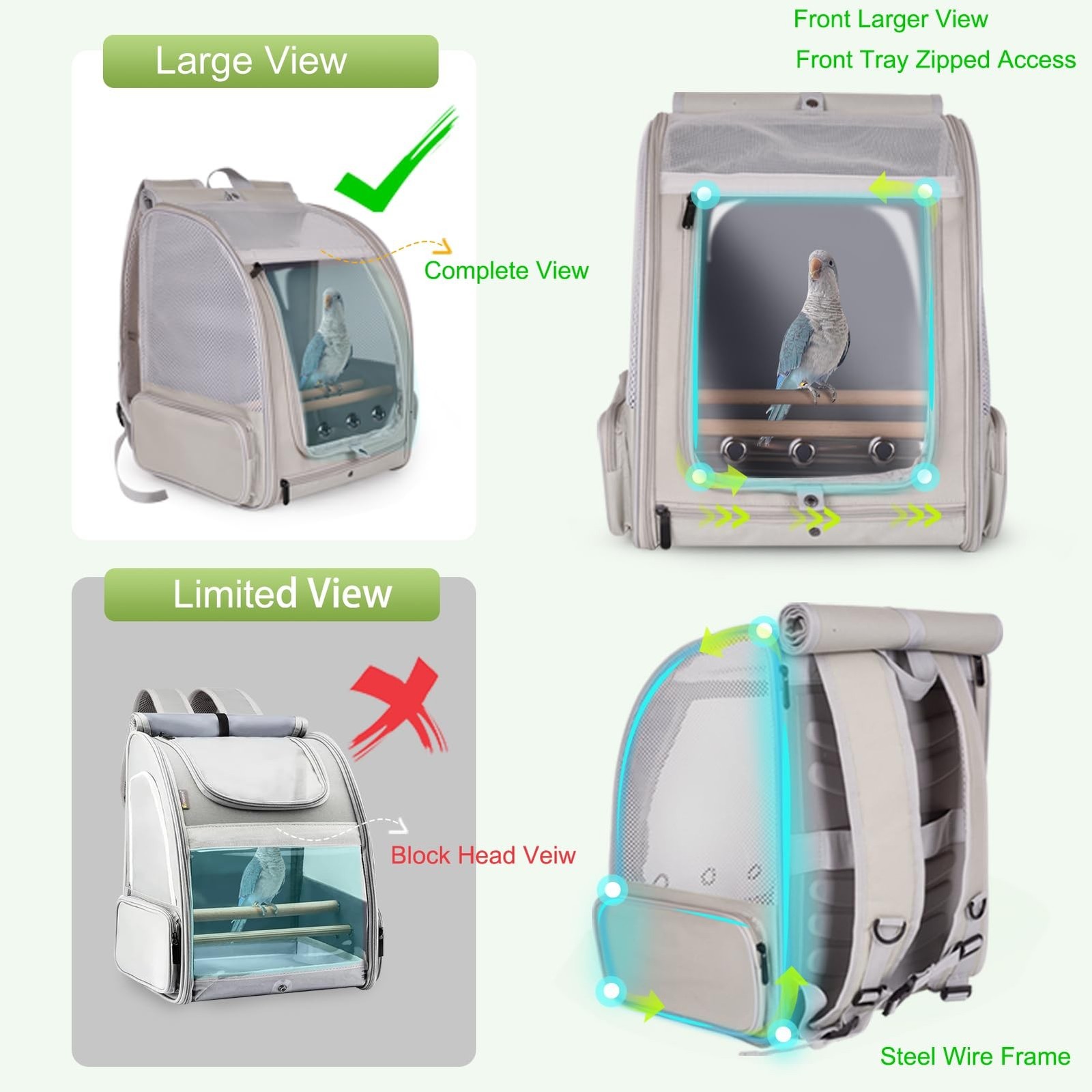 Bird Backpack Carrier with Front Zipper Opening, Portable Bird Travel Carrier...