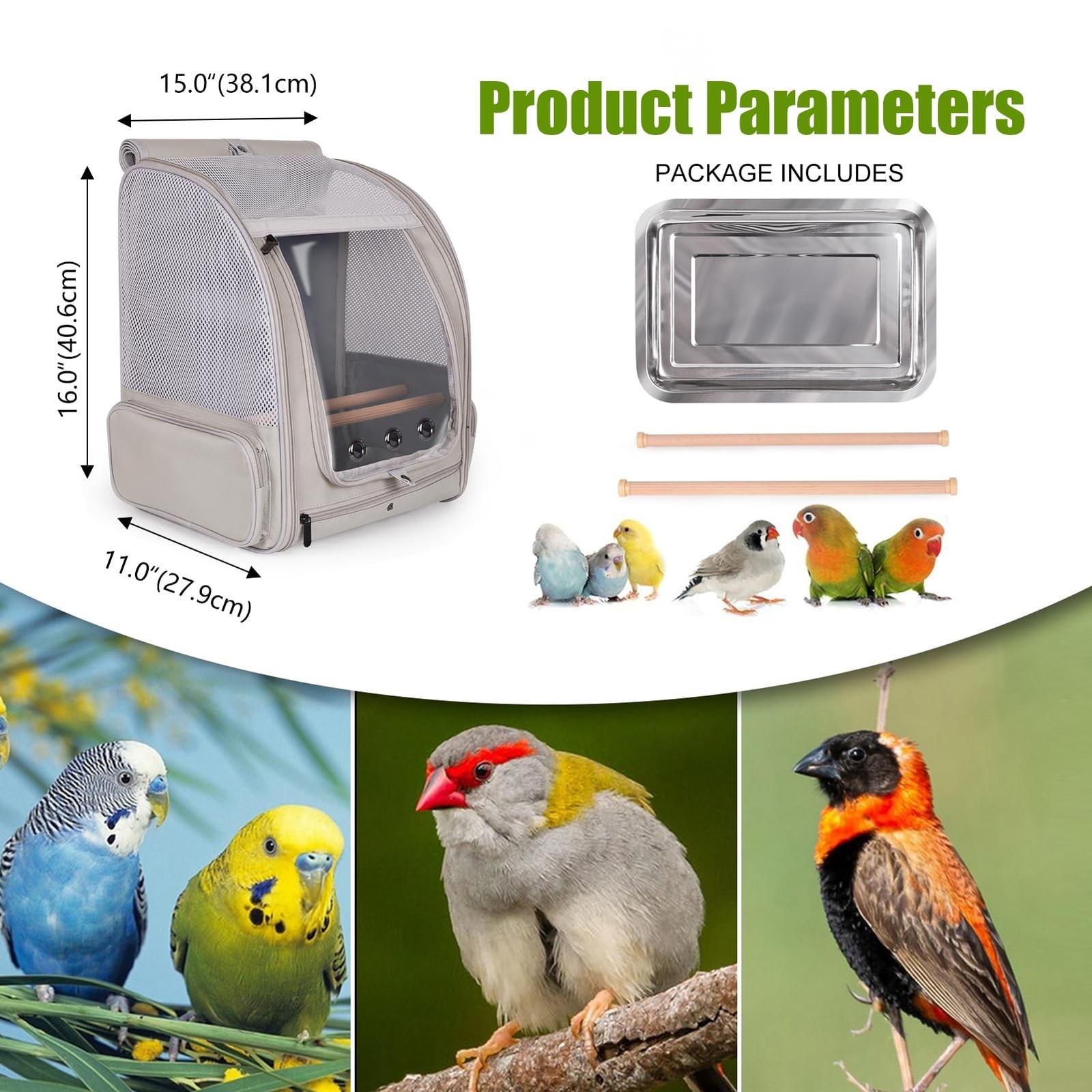 как выглядит Bird Backpack Carrier with Front Zipper Opening, Portable Bird Travel Carrier... фото