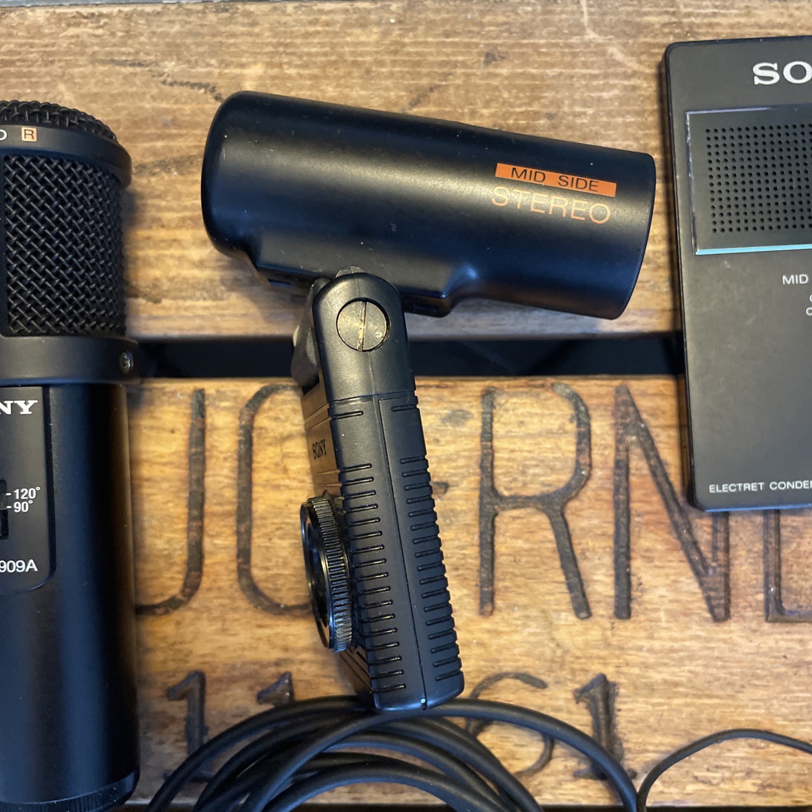 Sony ECM-909A Stereo Microphone Stand Sony ECM-F01 Flat Condenser Mic Lot