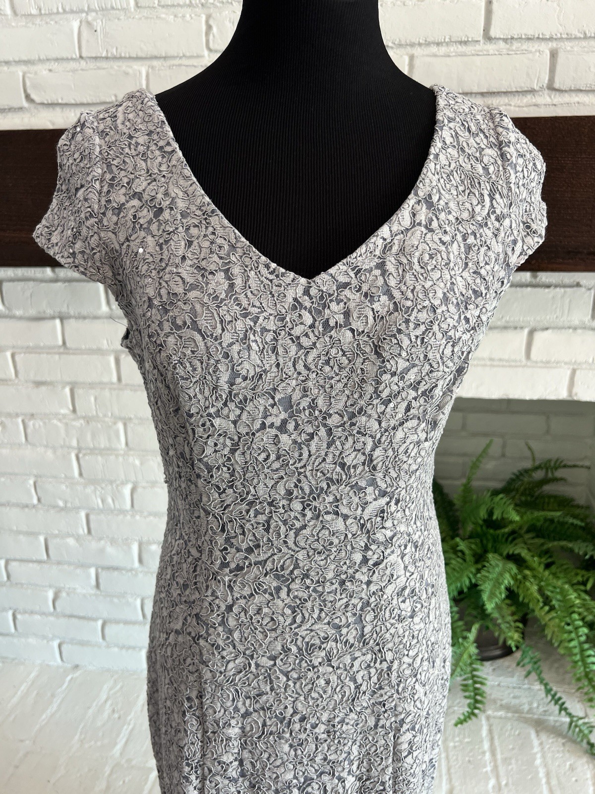 Alex Evenings Long Rosette Mother of The Bride Dress with Short Sleeves Size 10