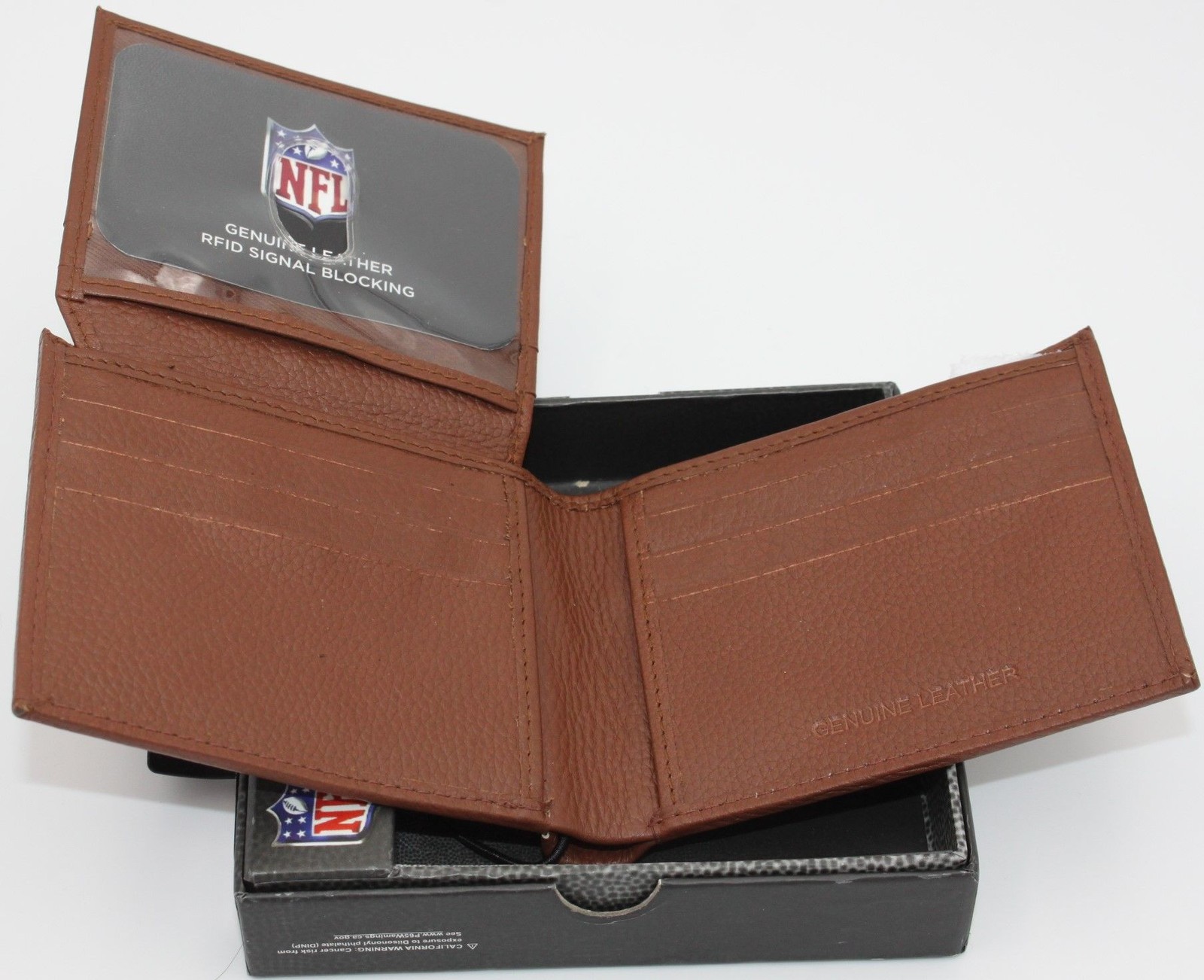 NFL Bills Wallet Mens Genuine Leather RFID Brown Embossed Passcase Bi-Fold NEW