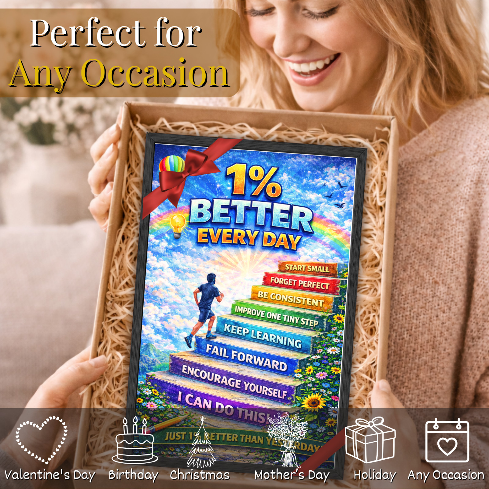 как выглядит 1 Better Every Day Wall Art Motivational Poster Framed 11x17 Gift Office or Gym фото
