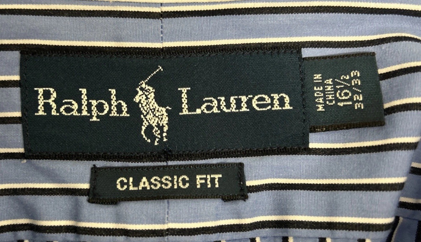 Ralph Lauren Classic Fit Mens 16 1/2 Blue Stripe Long Sleeve Button Down Shirt