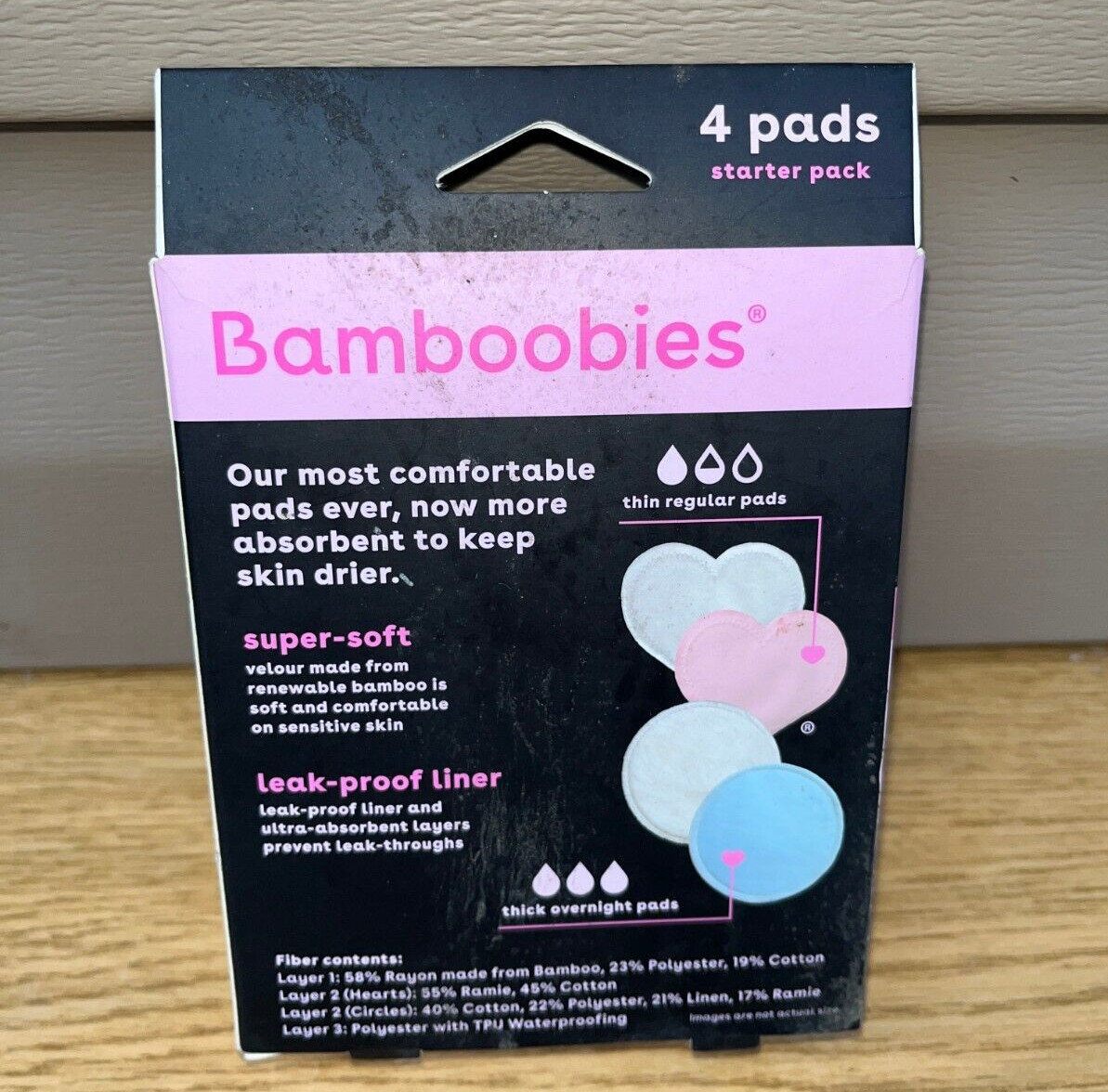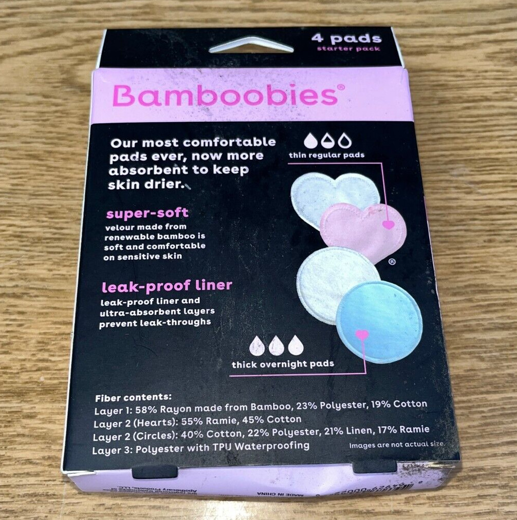 New Bamboobies Reusable Nursing Pads 2 Pairs , for Breastfeeding Super-Soft