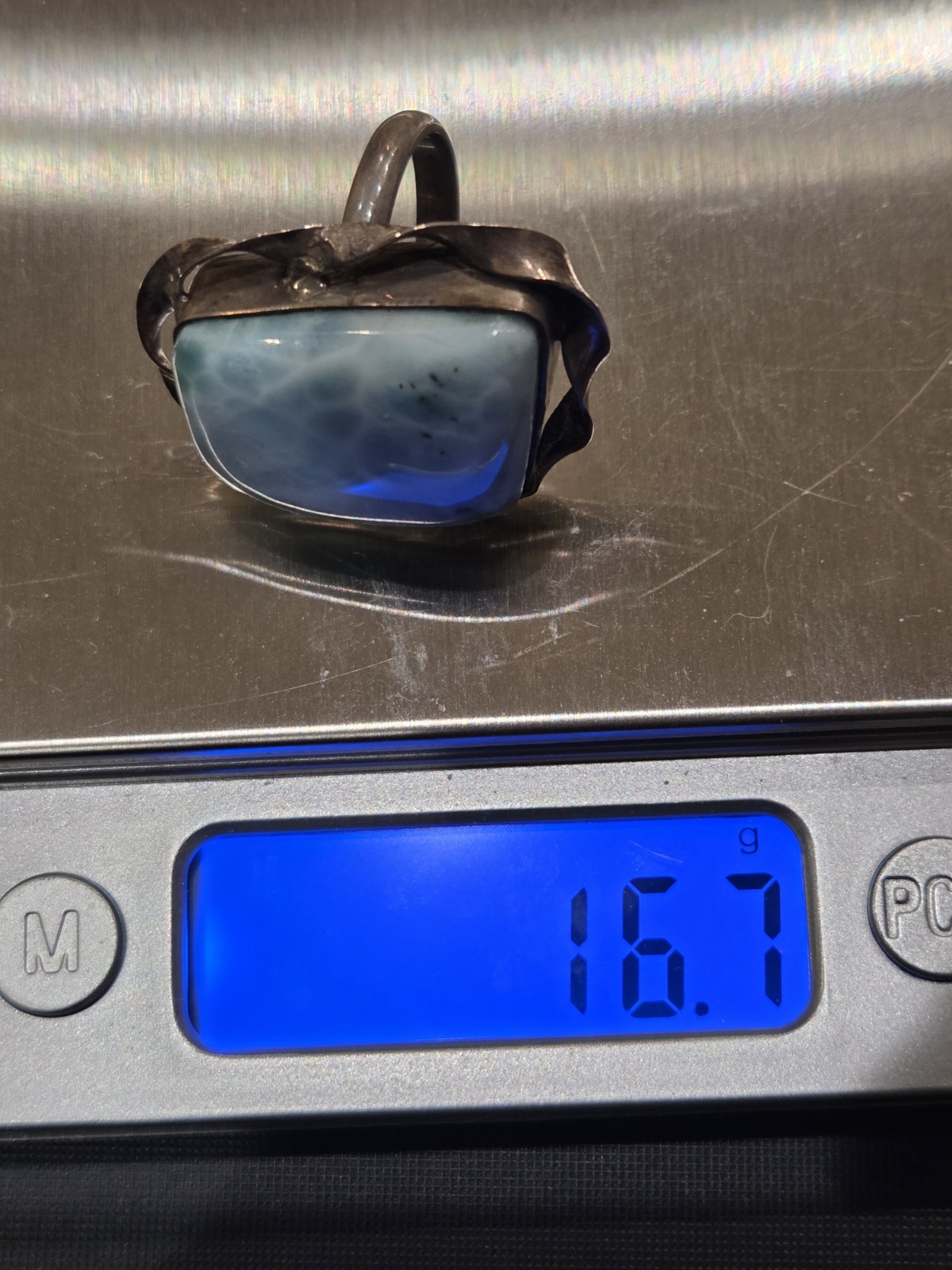 как выглядит Vintage 925 Sterling Silver Natural Caribean Gem Larimar Size 5 Ring 16.7 Grams фото