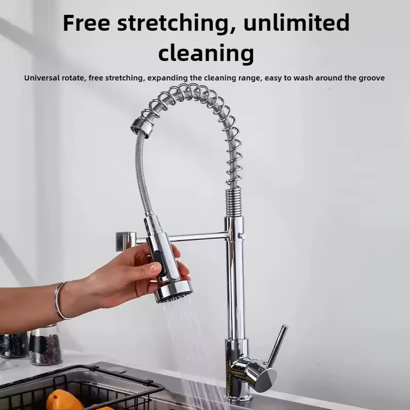 Kitchen Pull Down Spring Sink Faucet 360 Rotation Hot Cold Mixer Tap