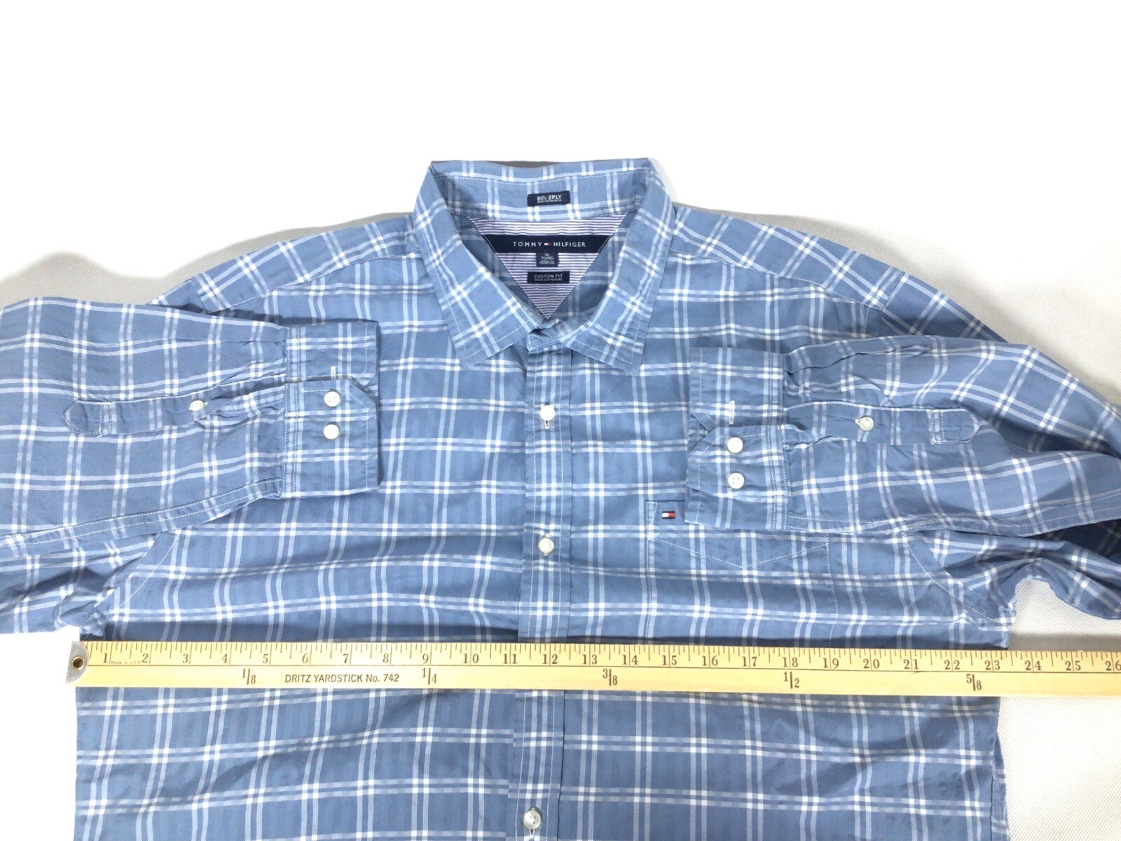 Tommy Hilfiger Shirt Men's XL Cotton Blue Check Long Sleeve Button Up