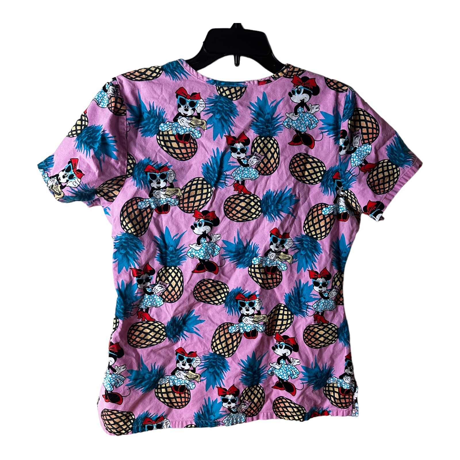 Disney Minnie Mouse Scrub Top Women s Small 100 Cotton Pink Pineapple Hawaiian
