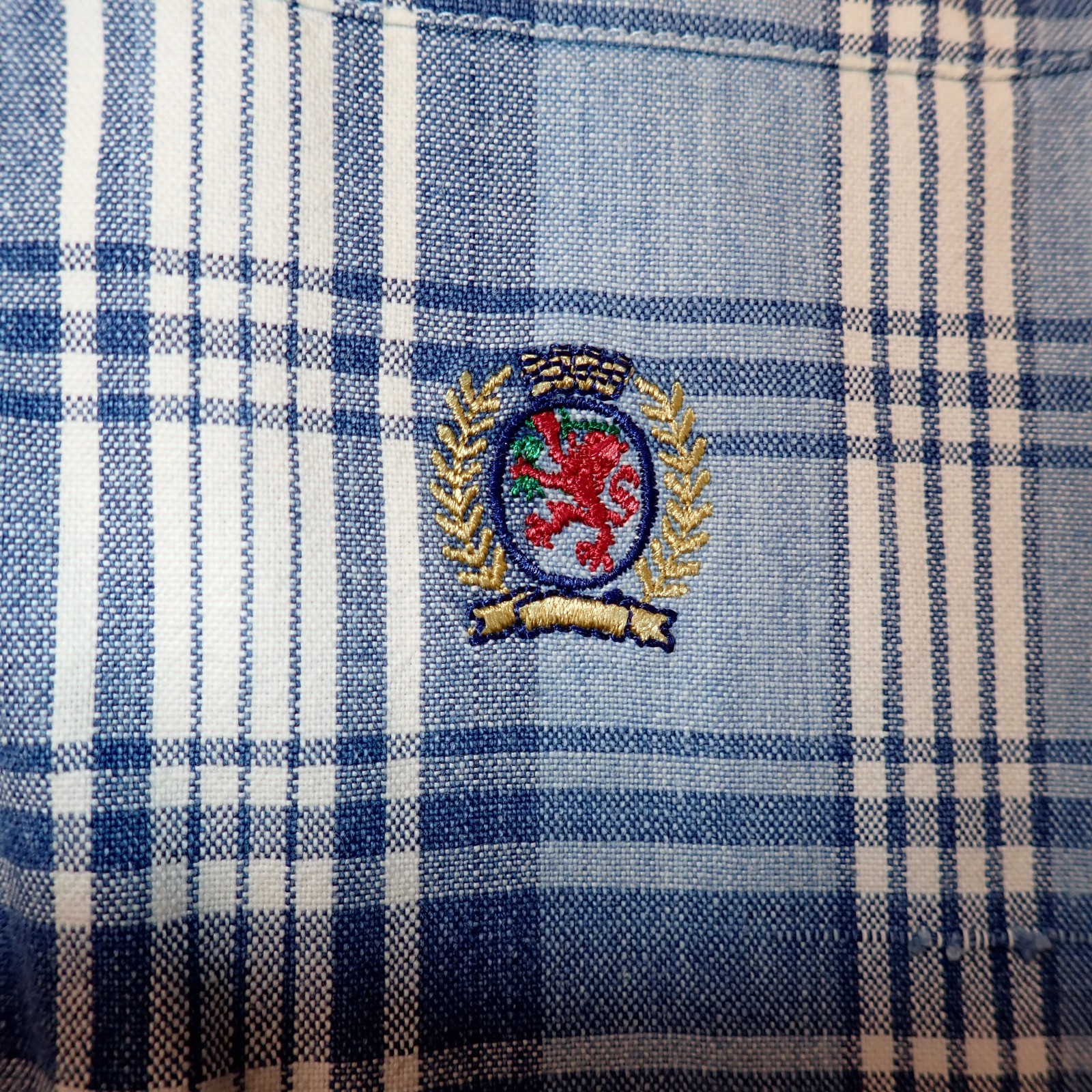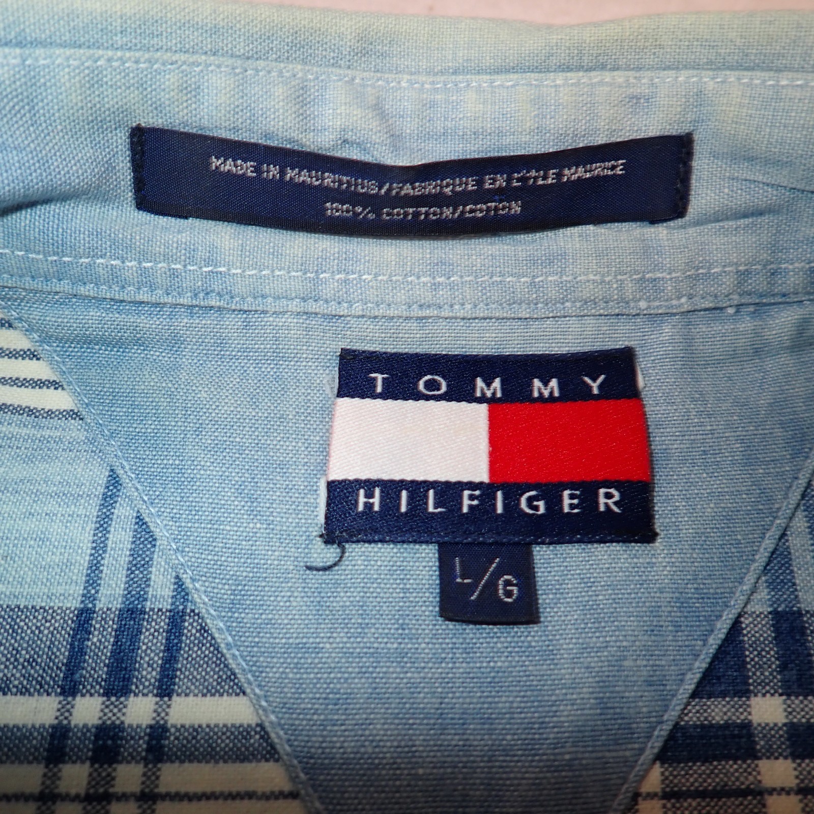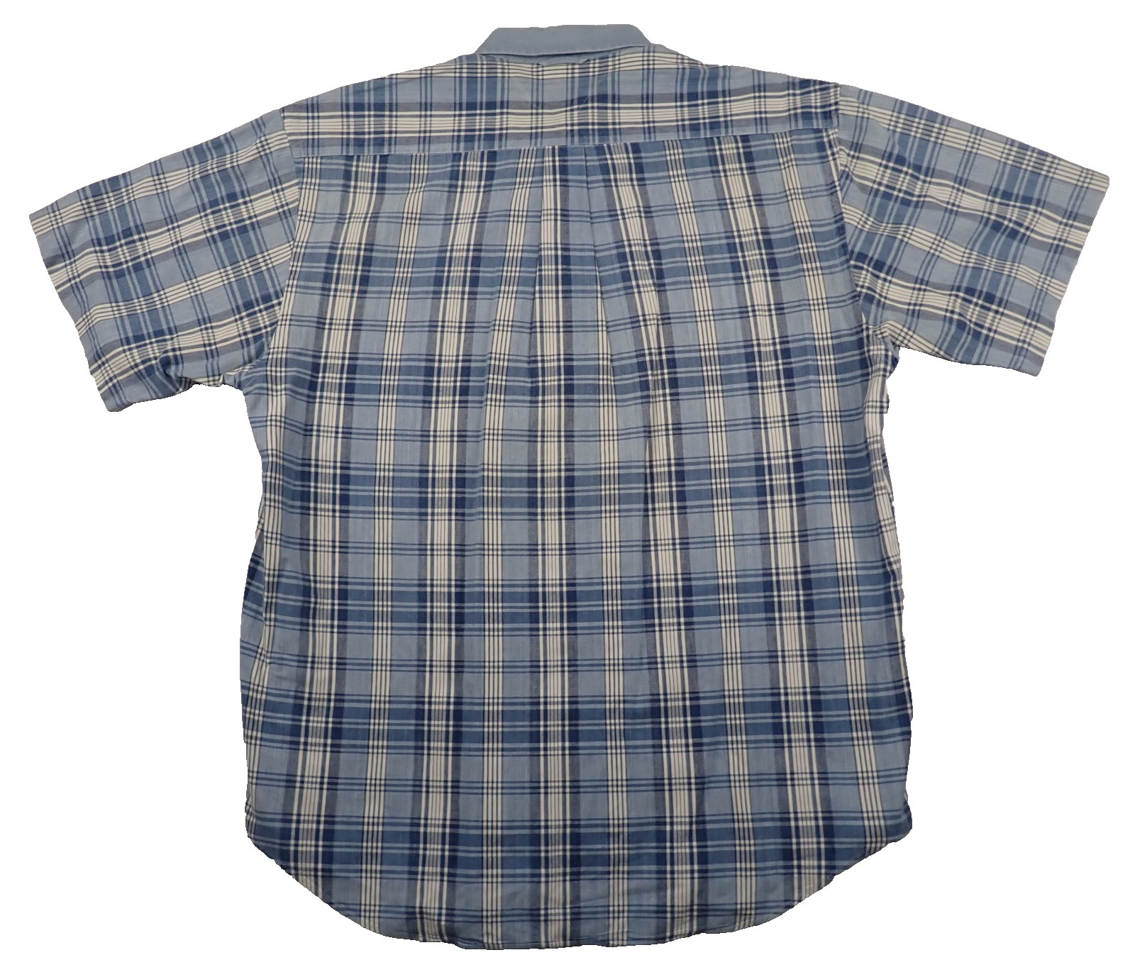Tommy Hilfiger Men s Plaid Short Sleeve Button Down Shirt L Blue White 100 Cott