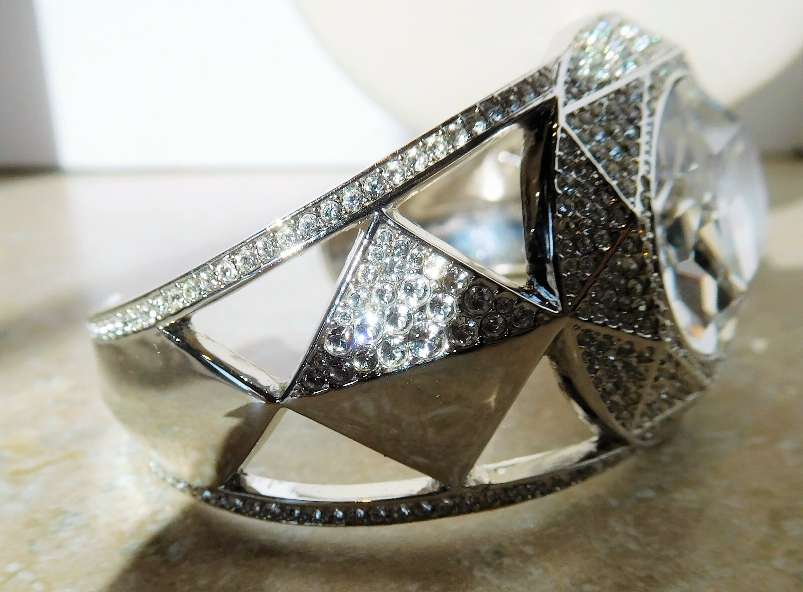 как выглядит Swarovski Sophisticated Cuff Crystal Bracelet Rhodium Plated Size M In Box фото