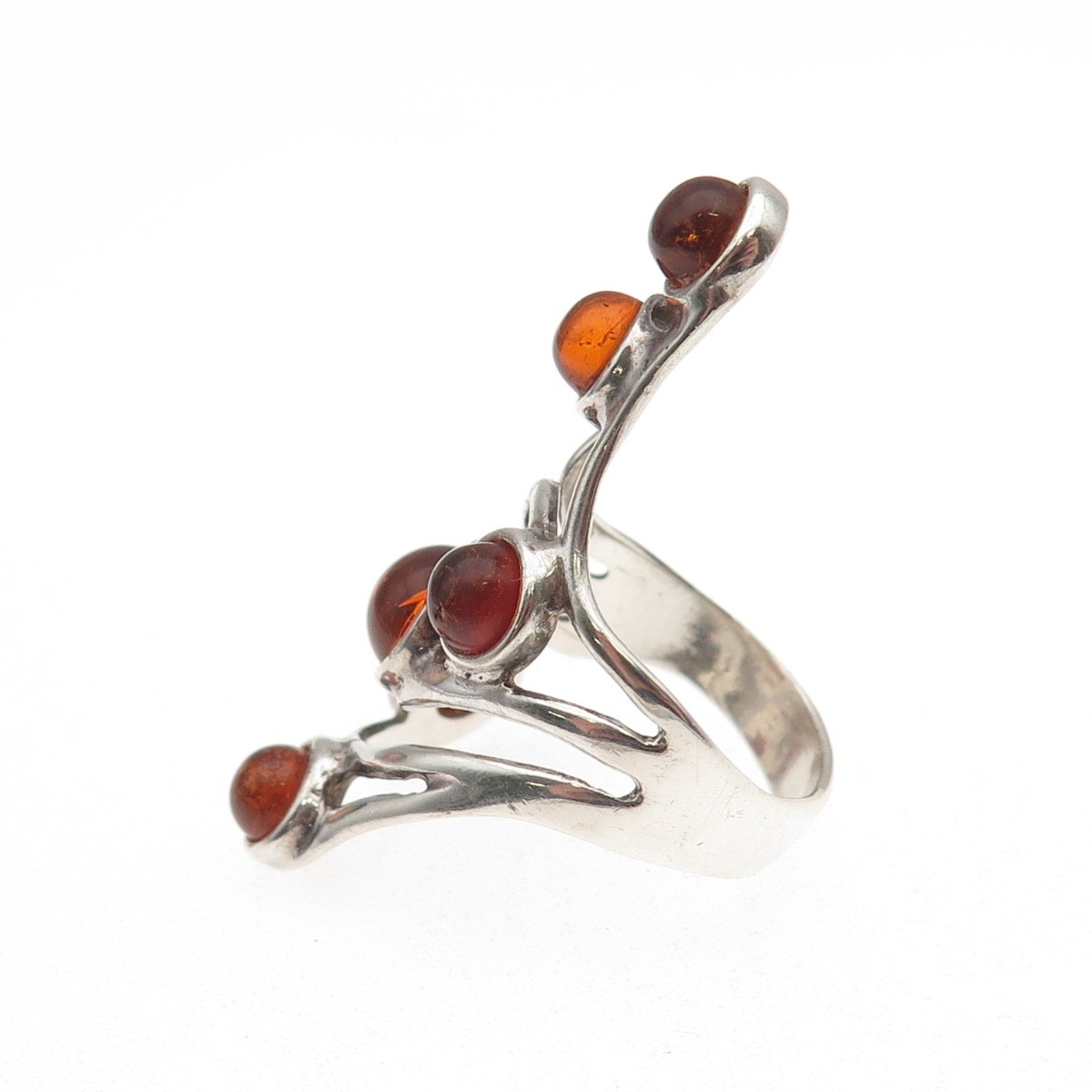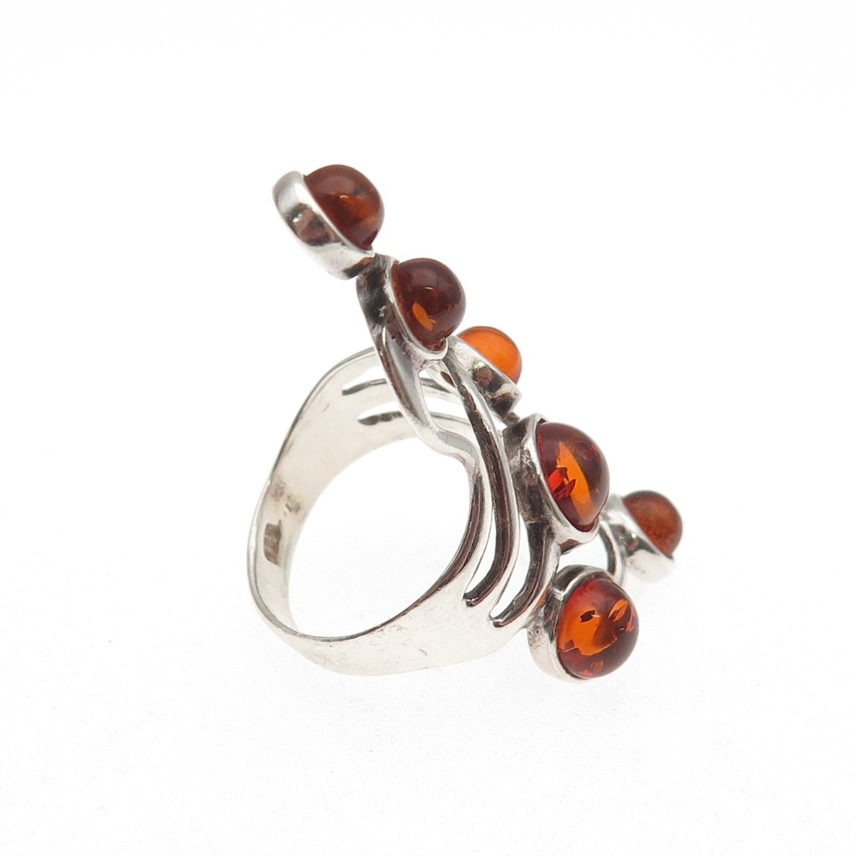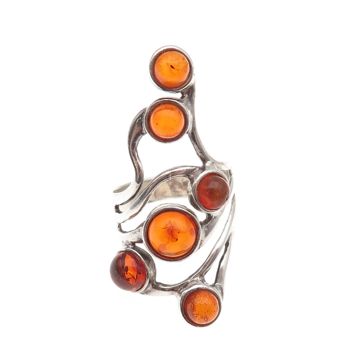 925 Sterling Silver Vintage Real Amber Modernist Oxidized Ring Size 7