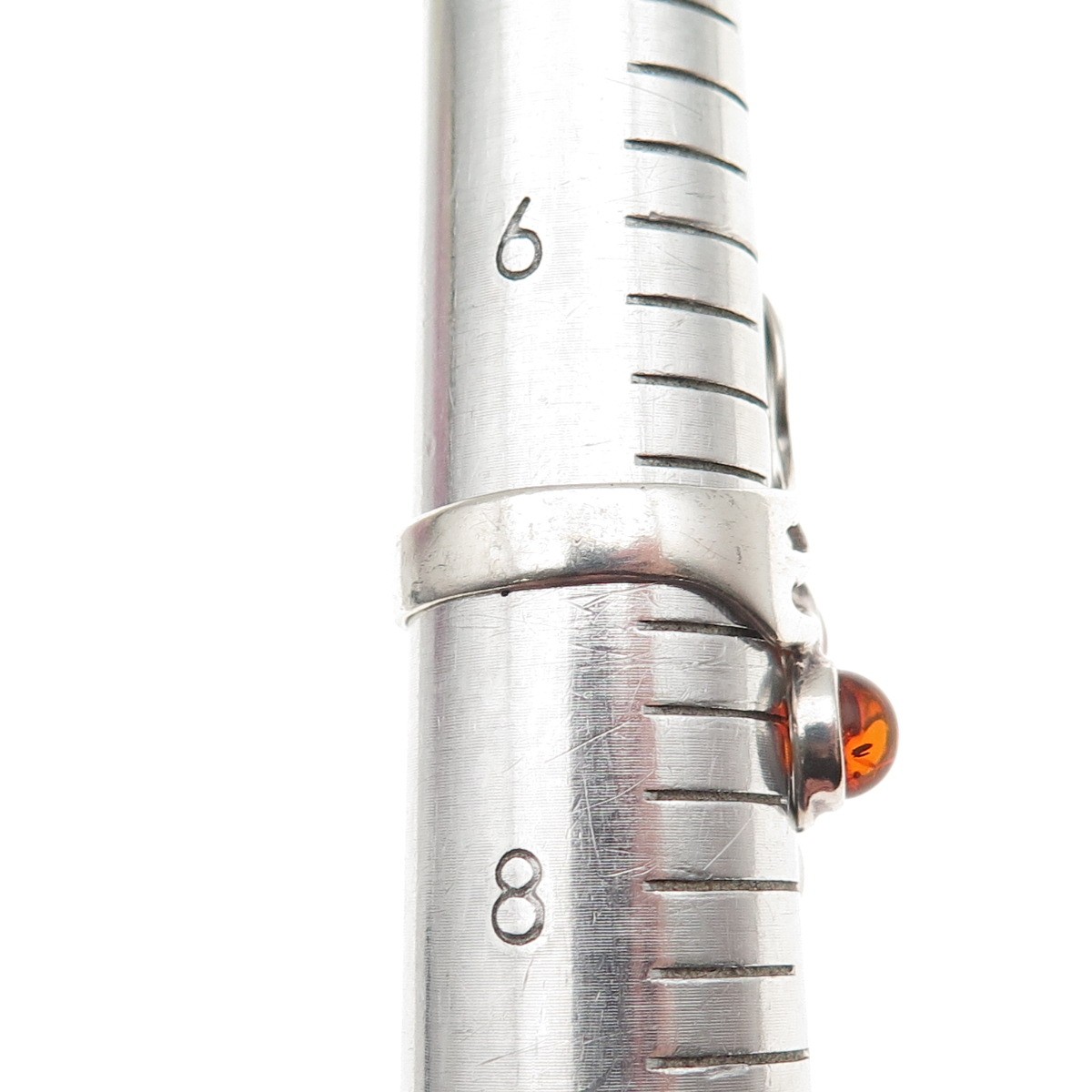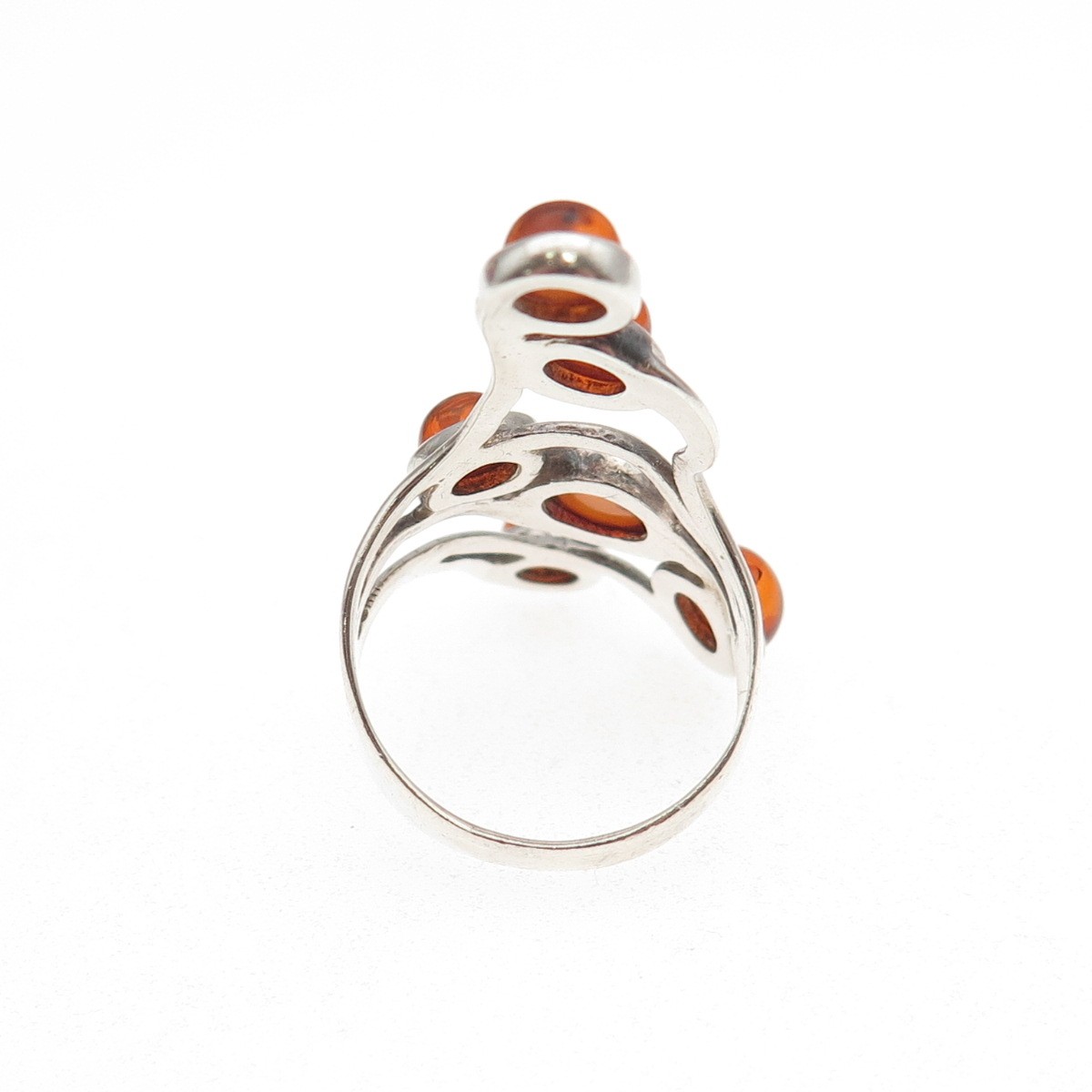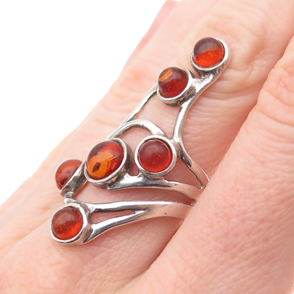 925 Sterling Silver Vintage Real Amber Modernist Oxidized Ring Size 7