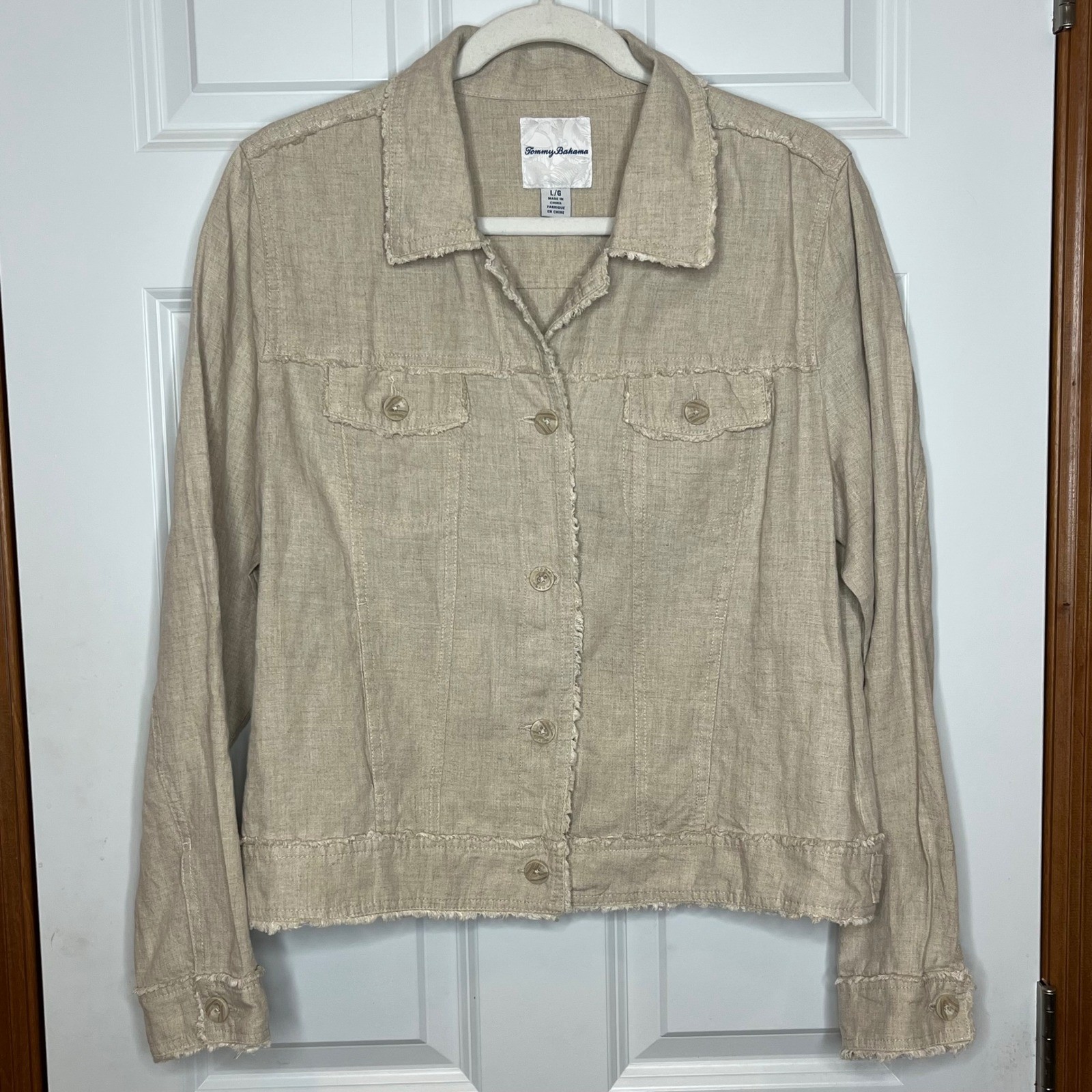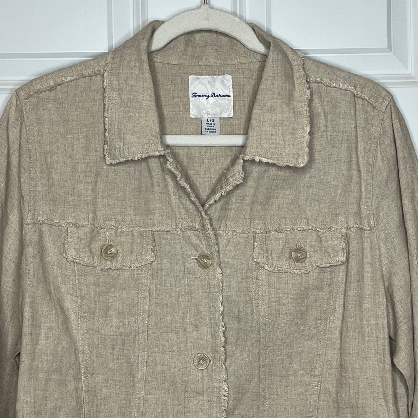 как выглядит Tommy Bahama Two Palms Raw Edge LARGE Resort Cruising Jean Jacket Style фото