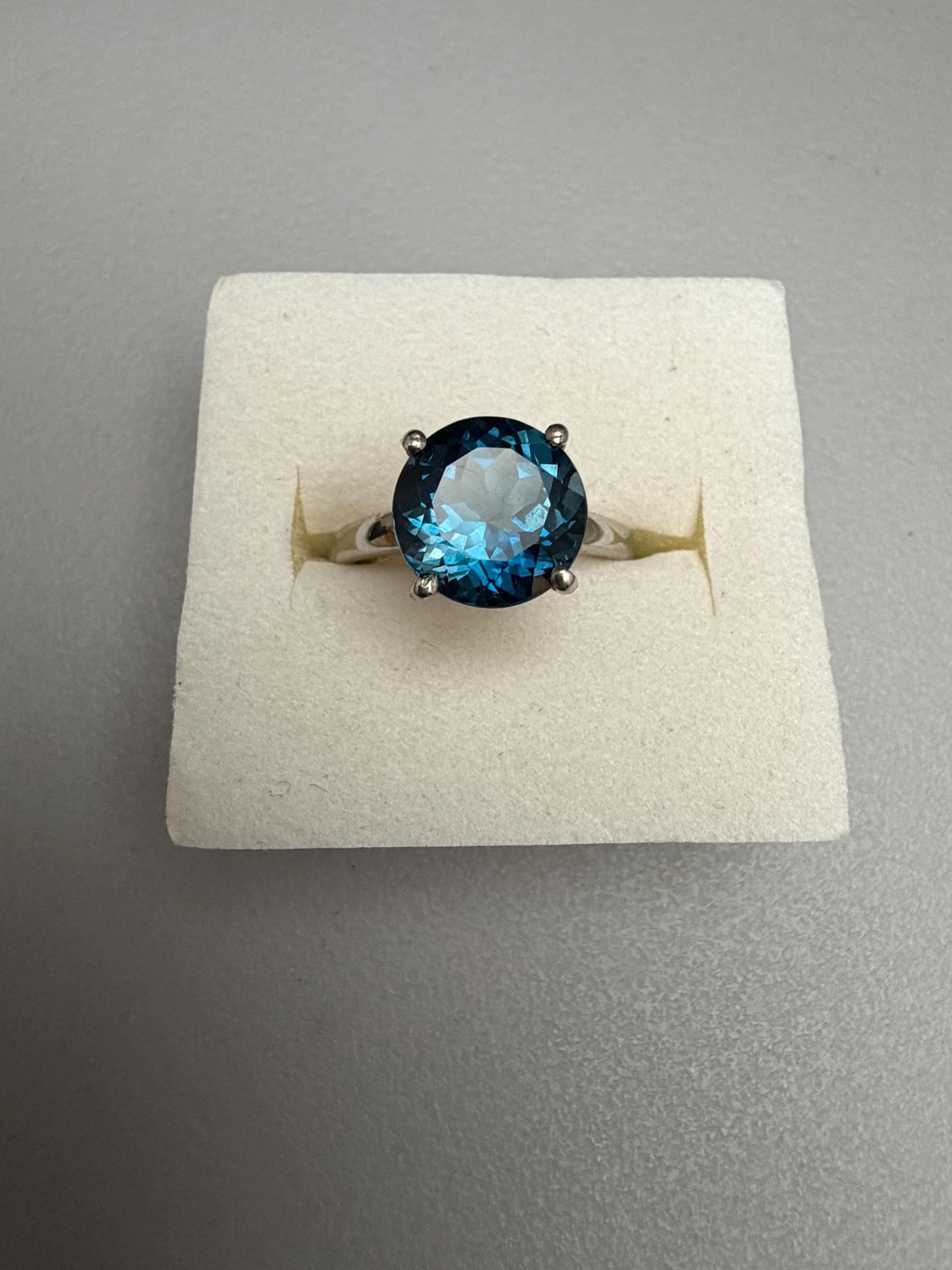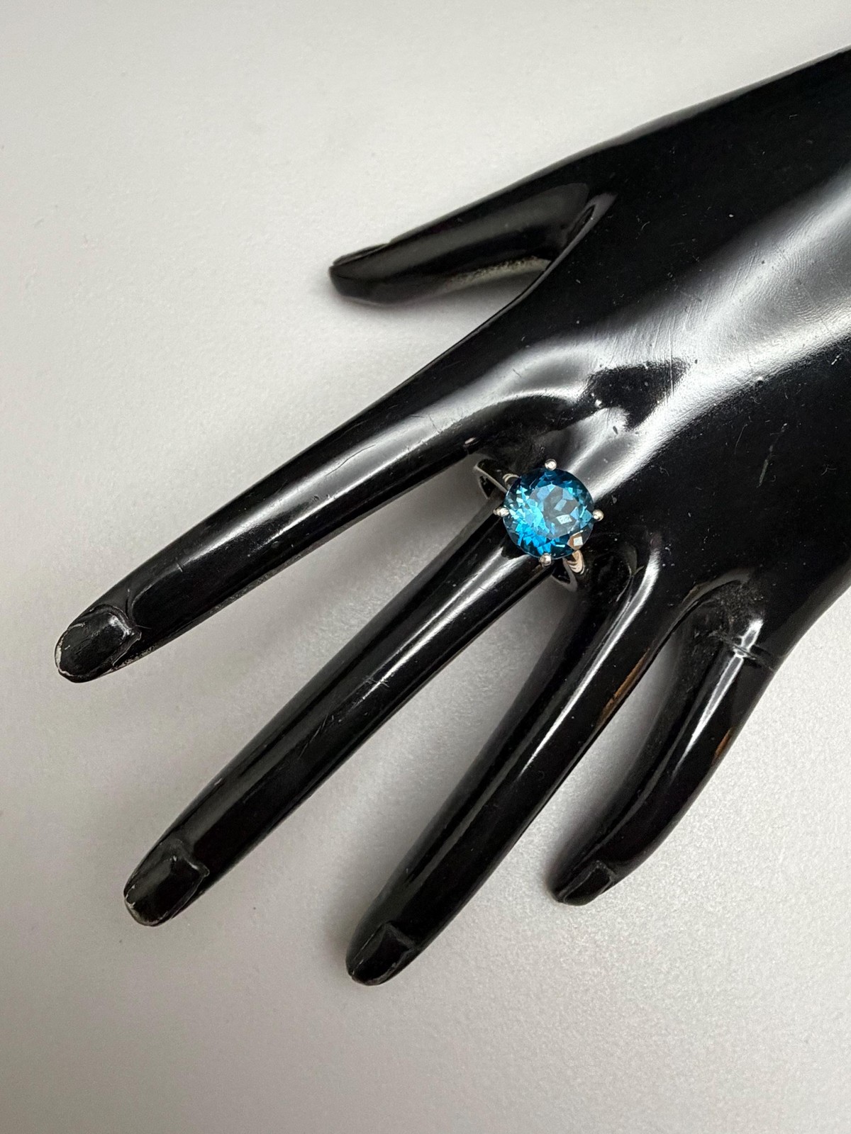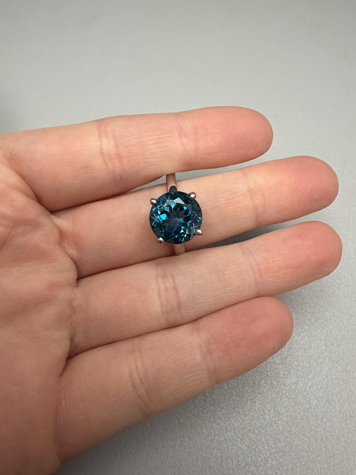 как выглядит Large London Blue Topaz Sterling Silver Round Cut Solitaire Ring 6.25 cts. фото