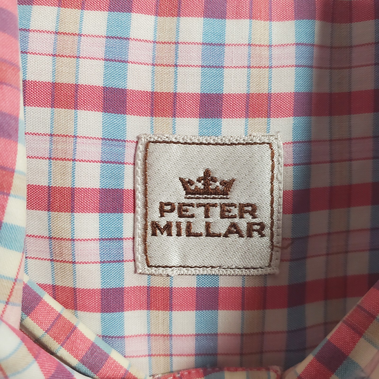 как выглядит Peter Millar Shirt Mens L Pink Blue Plaid Button Down Long Sleeve Preppy Office фото