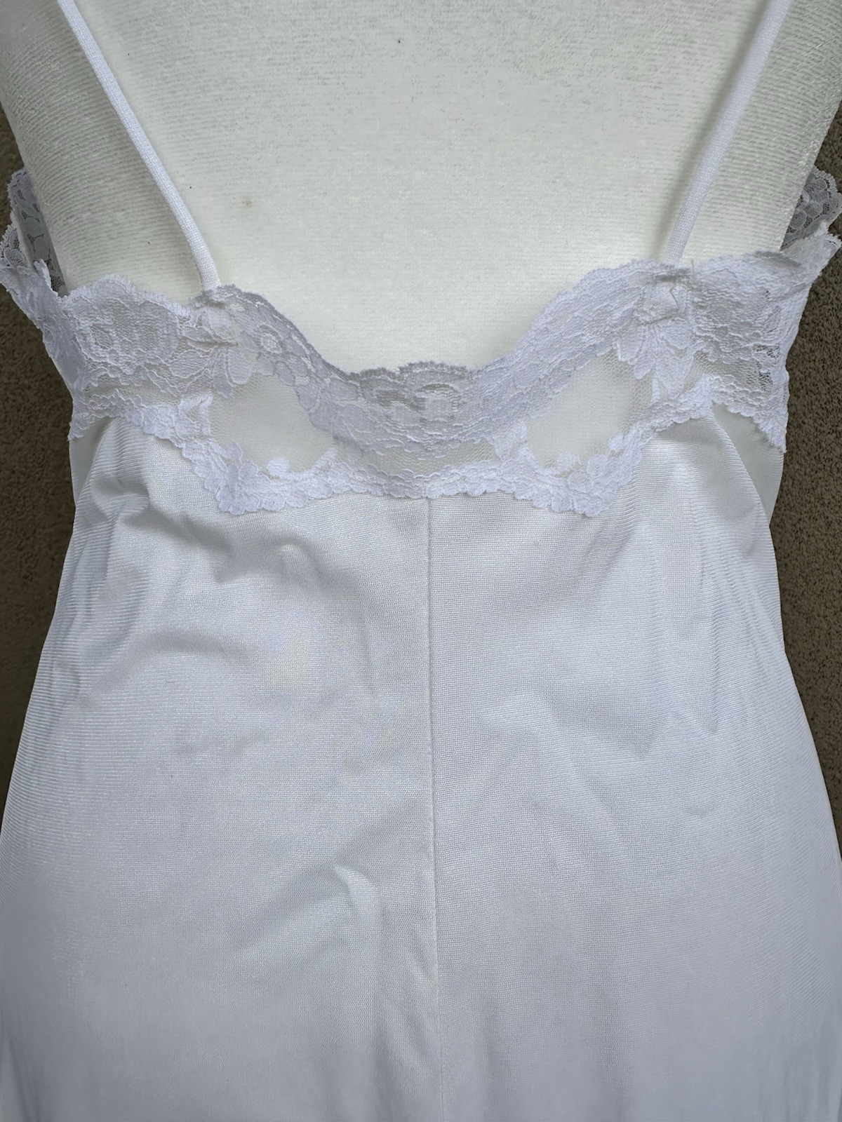 Vtg Val Mode White Shimmer Nylon Lace Bridal Nightgown Size M Long Romantic