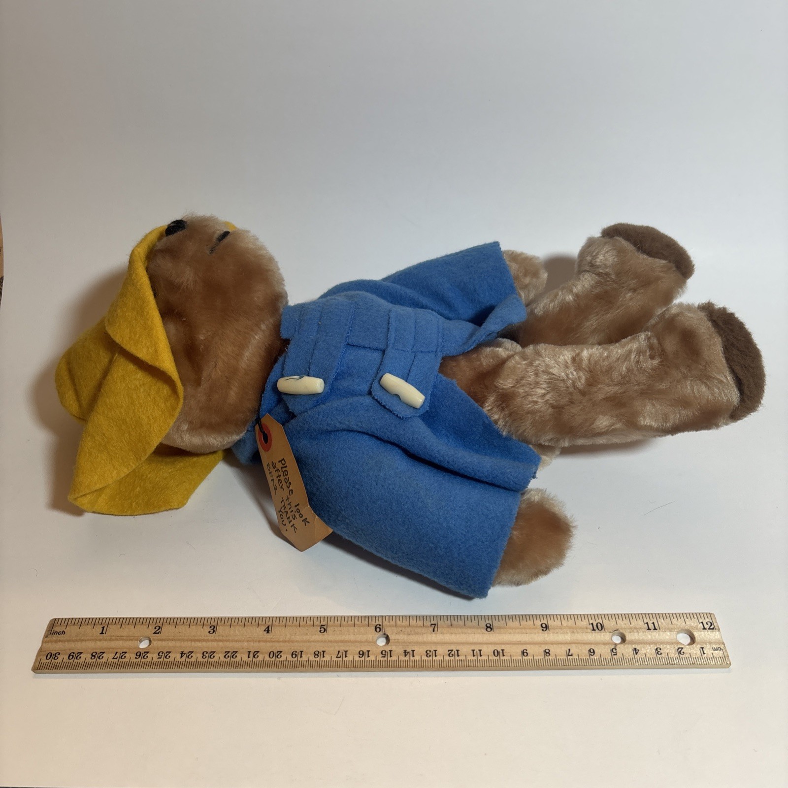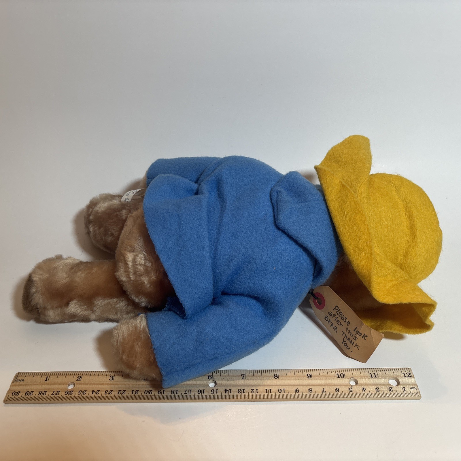 как выглядит Vintage 1975 Paddington Bear Plush 14 Eden Toys USA Yellow Hat Blue Coat фото