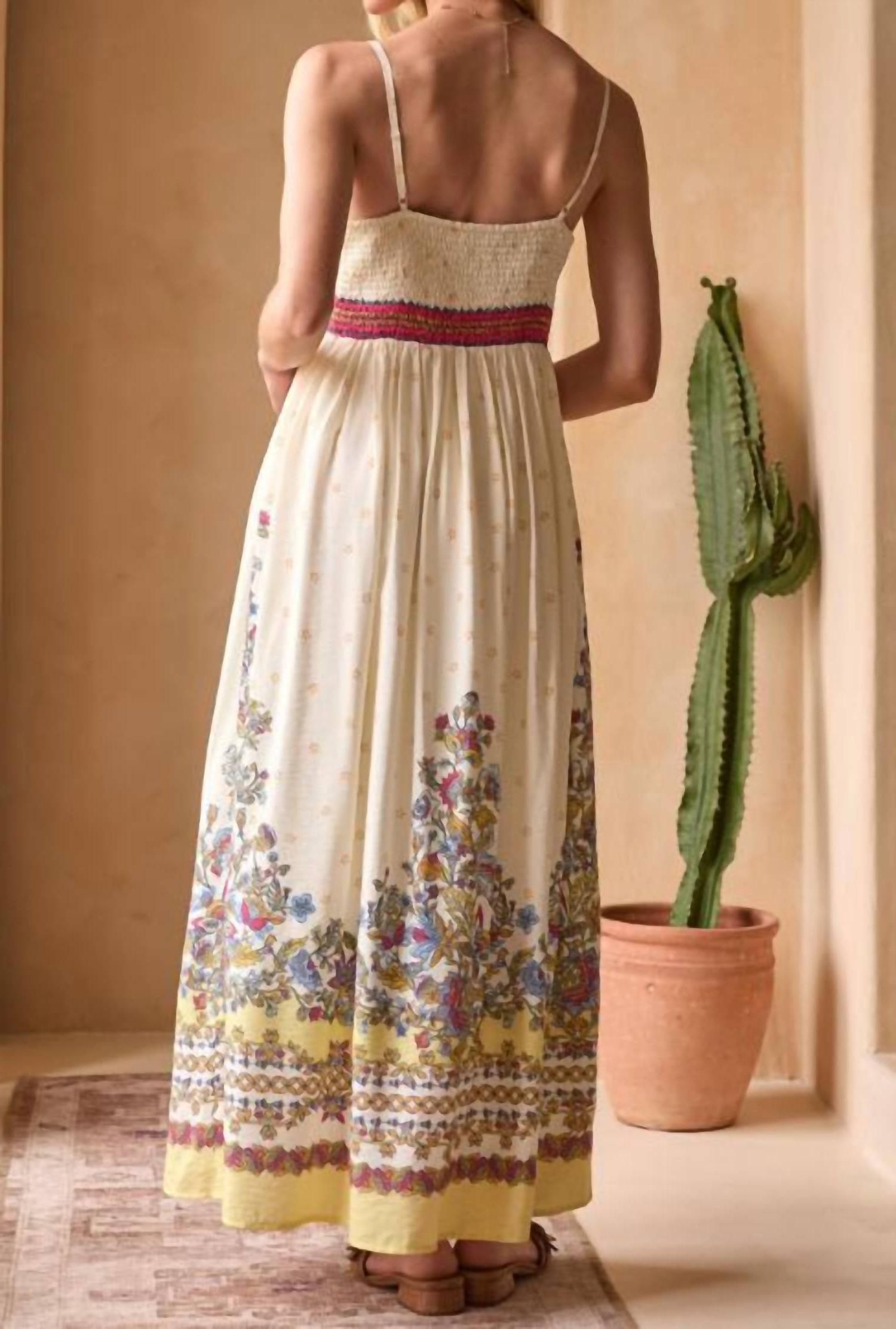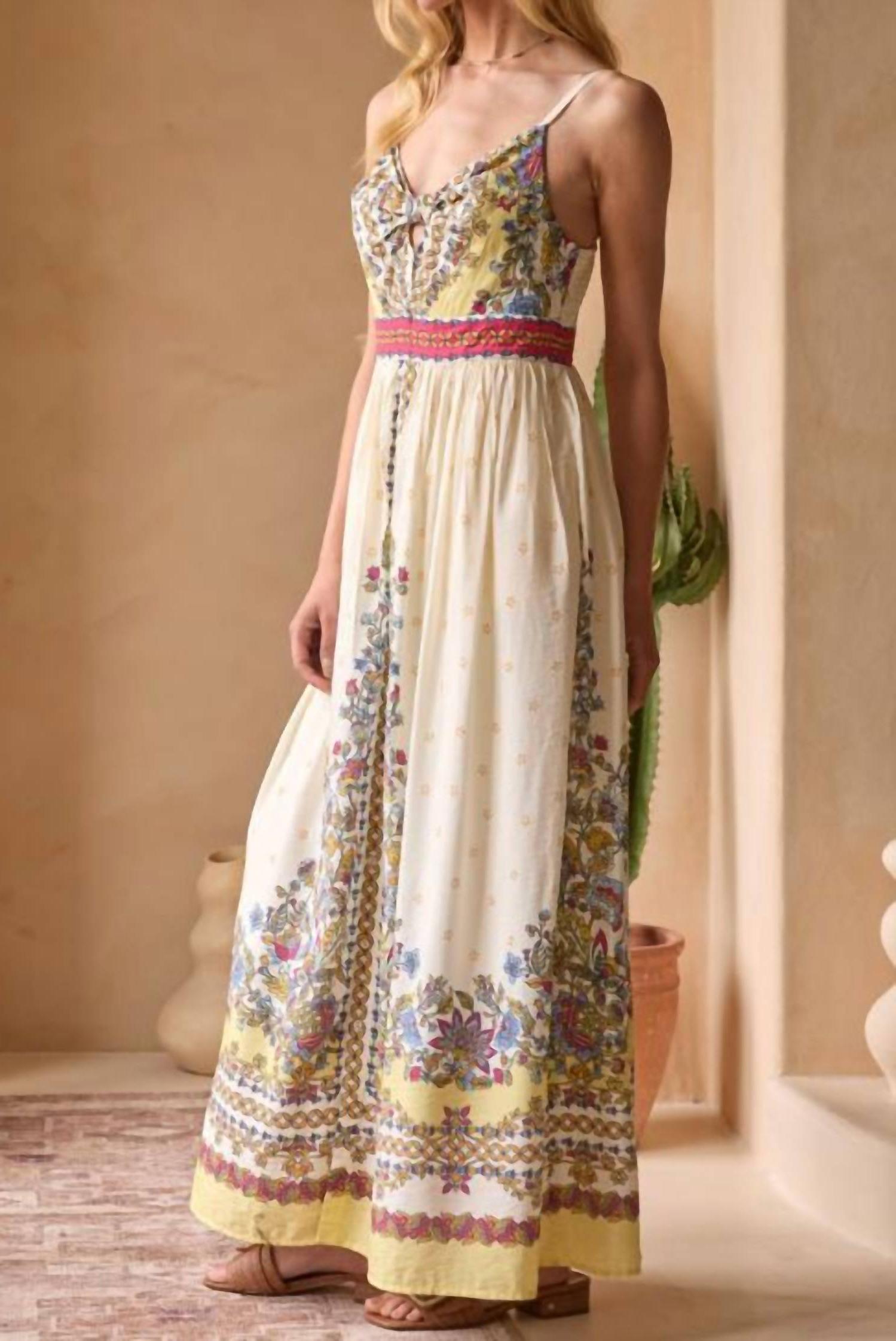 Skies Are Blue Sleeveless Border Print Midi Dress Biege Multi