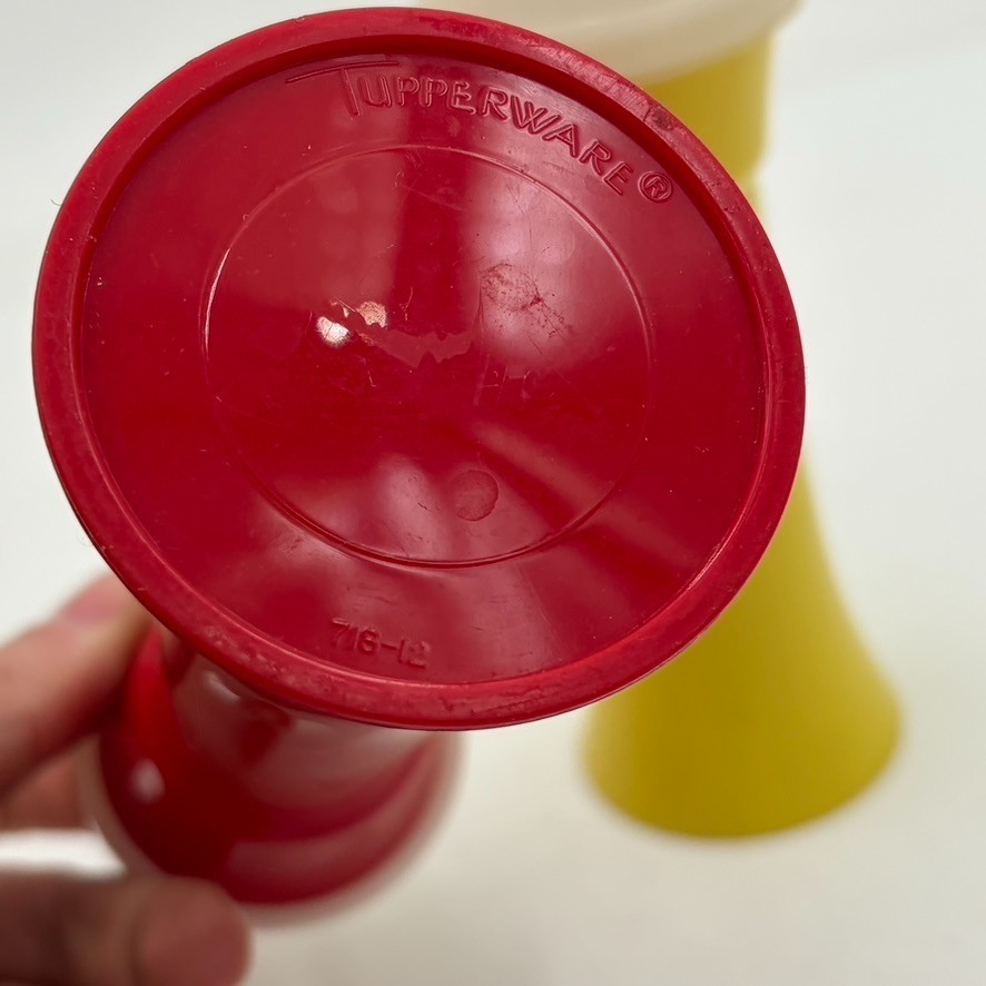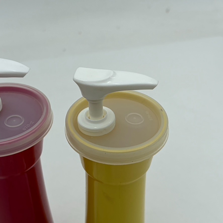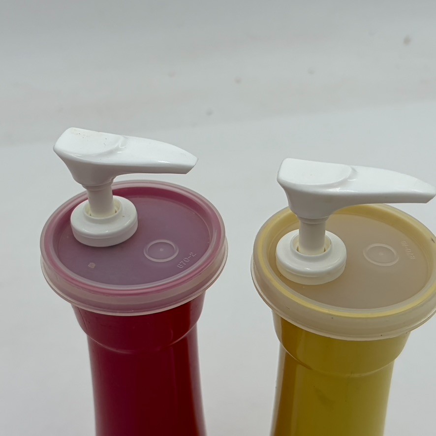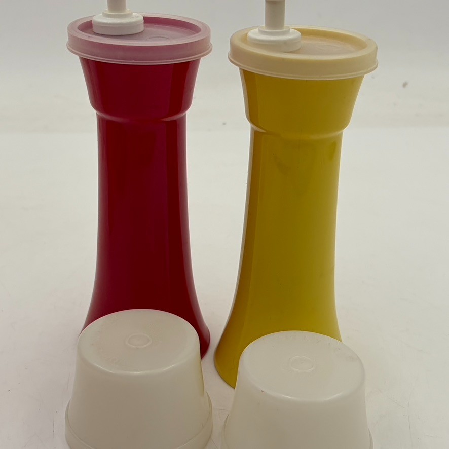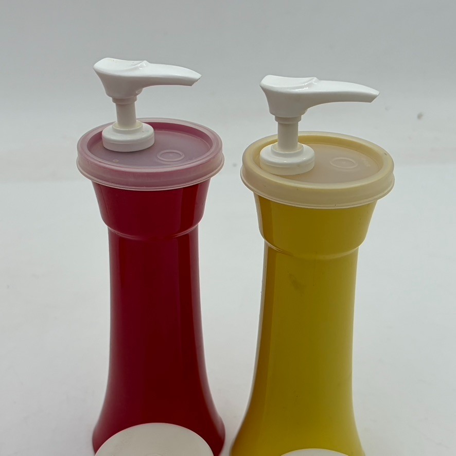 • Vintage Tupperware Ketchup And Mustard Yellow Red Pump Dispensers With Caps