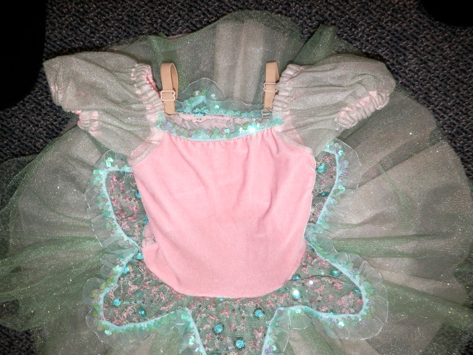 Revolution Dancewear Costume Tutu Girl Sz XSC Tulle Sequins Glitter Pink Teal