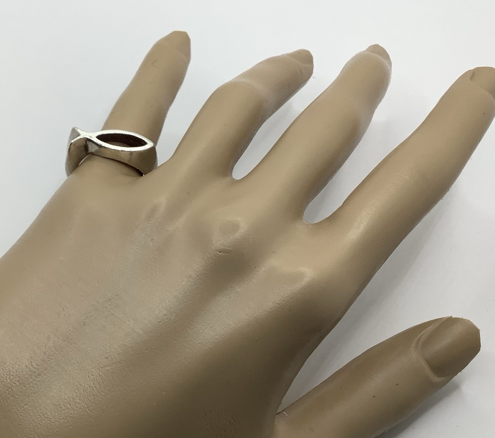 как выглядит Vintage Marked 925 Sterling Silver Chunky Fish Symbol Ring Size 6, 6.1gr фото
