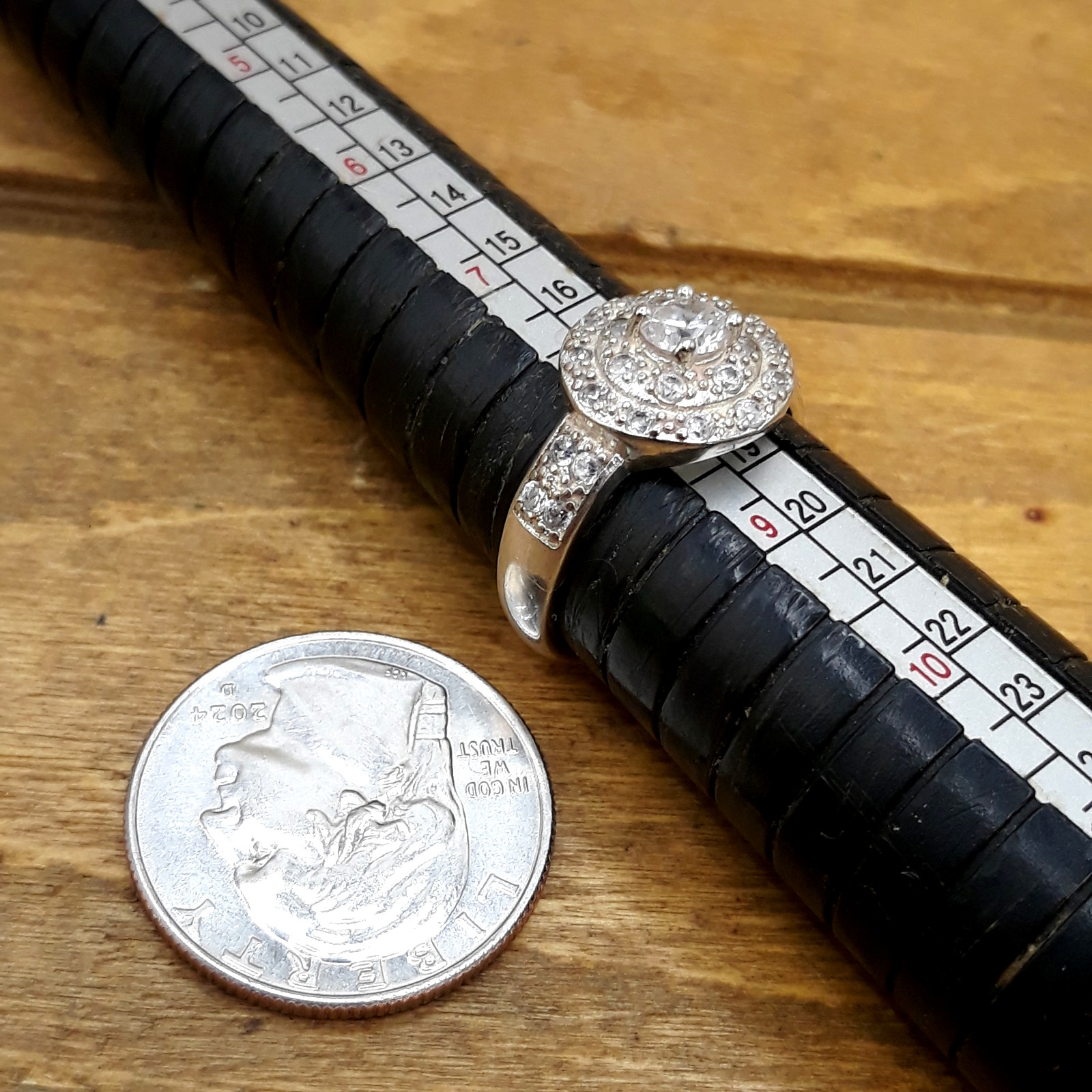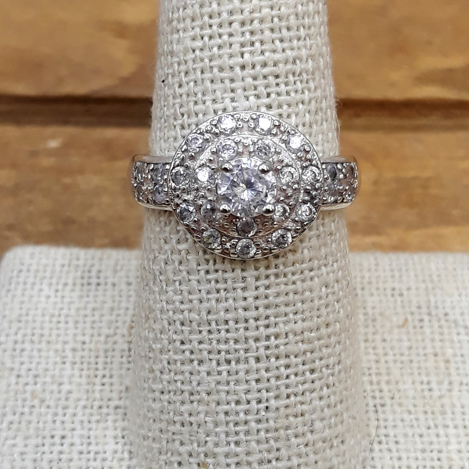 как выглядит Vintage CZ Sterling Silver Double Halo Design Ring Sz. 8 фото