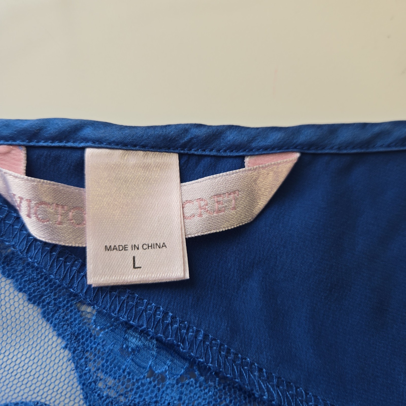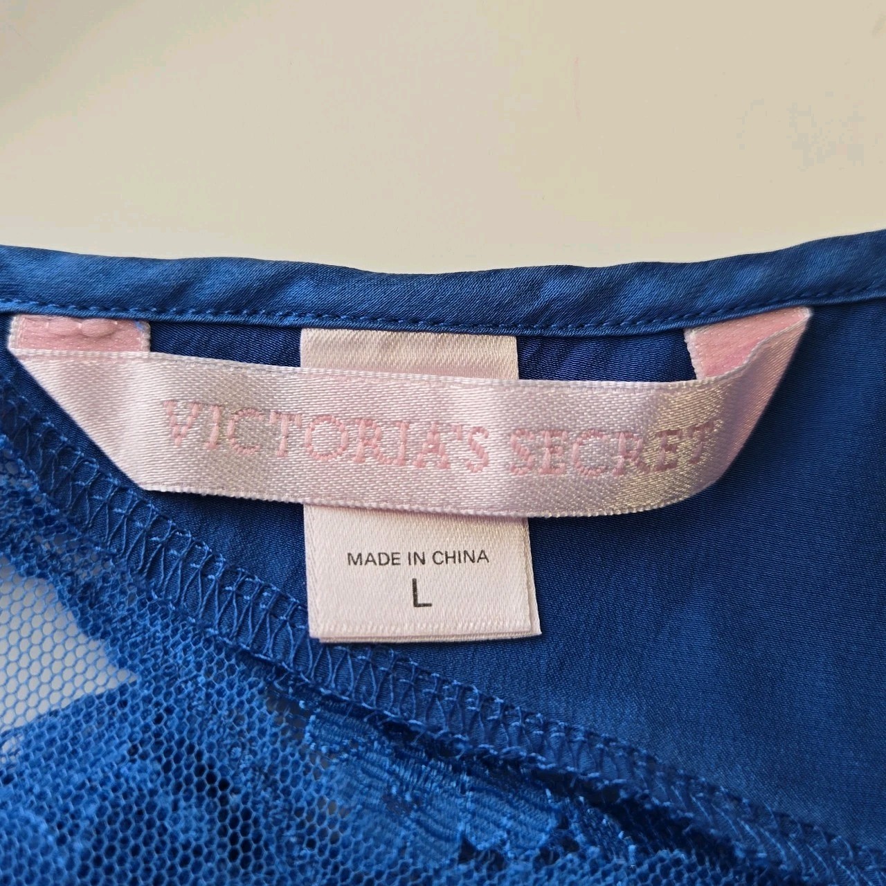 как выглядит Victoria s Secret Vtg Blue Silk And Mesh Nightie Camisole Top Size L Lingerie фото
