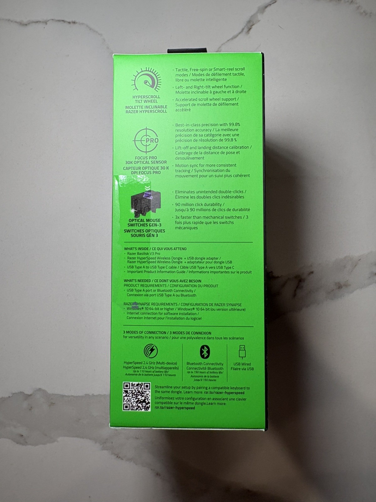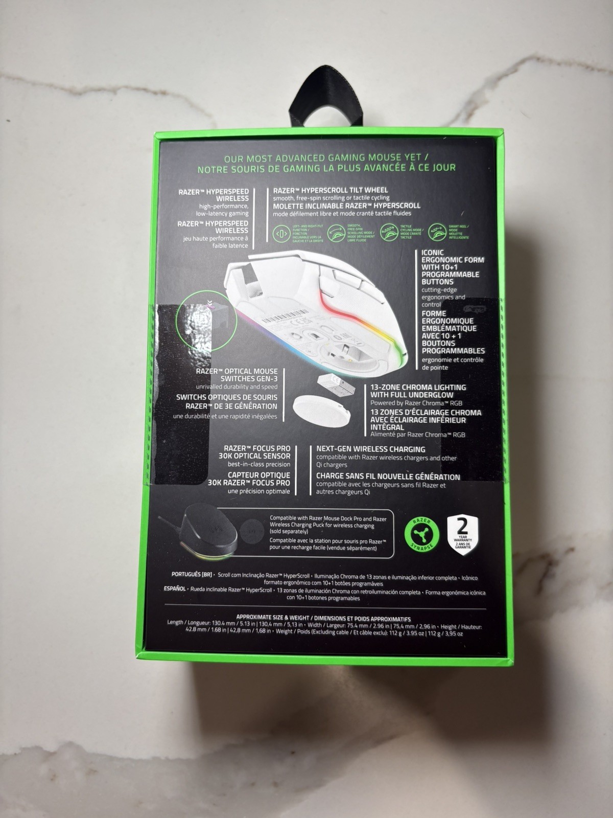 Razer Basilisk V3 Pro White Wireless Gaming Mouse 30K DPI HyperScroll Chroma RGB