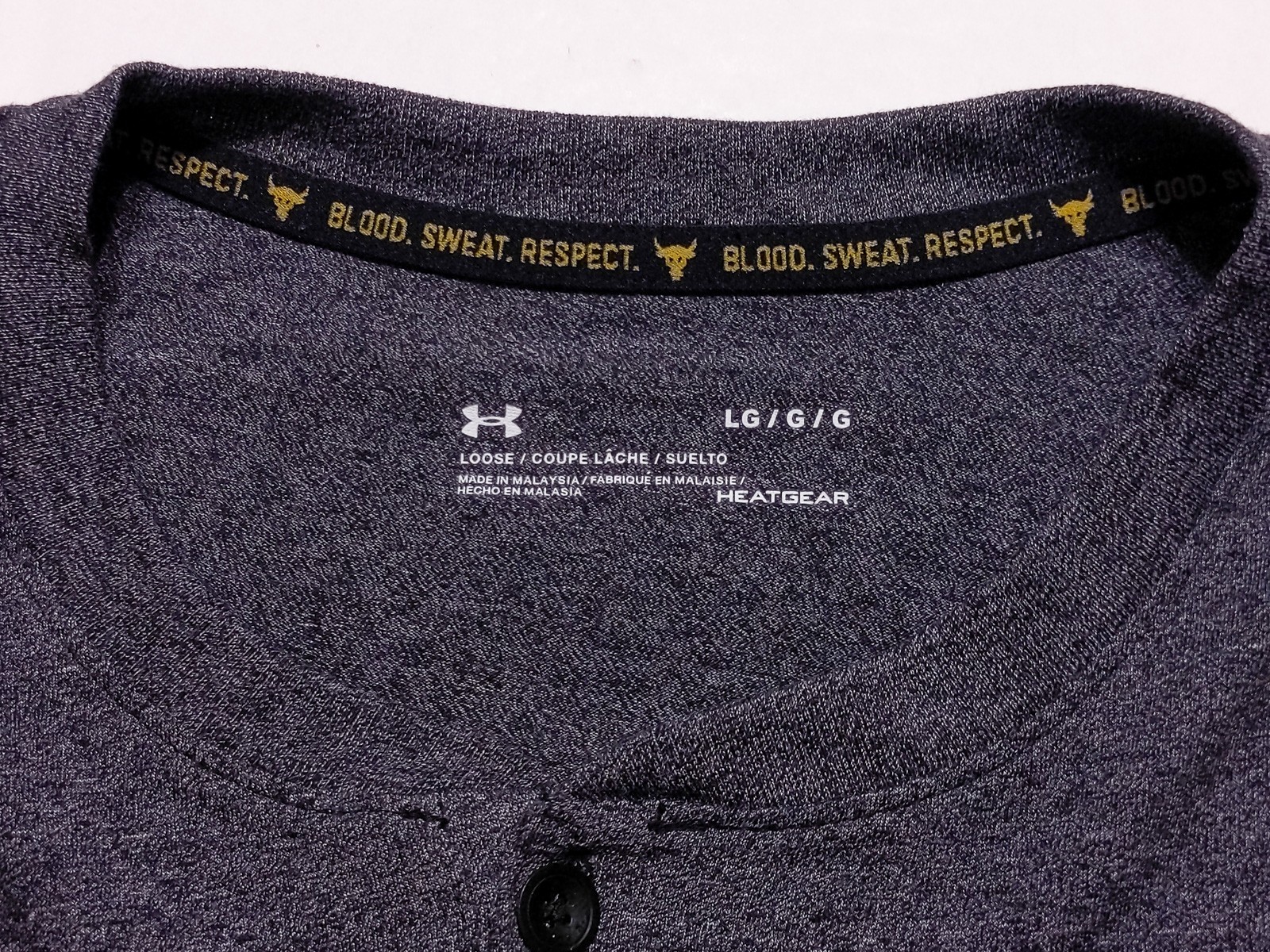UNDER ARMOUR Project Rock Long Sleeve Henley Shirt 1346095 Blue Gray Large L