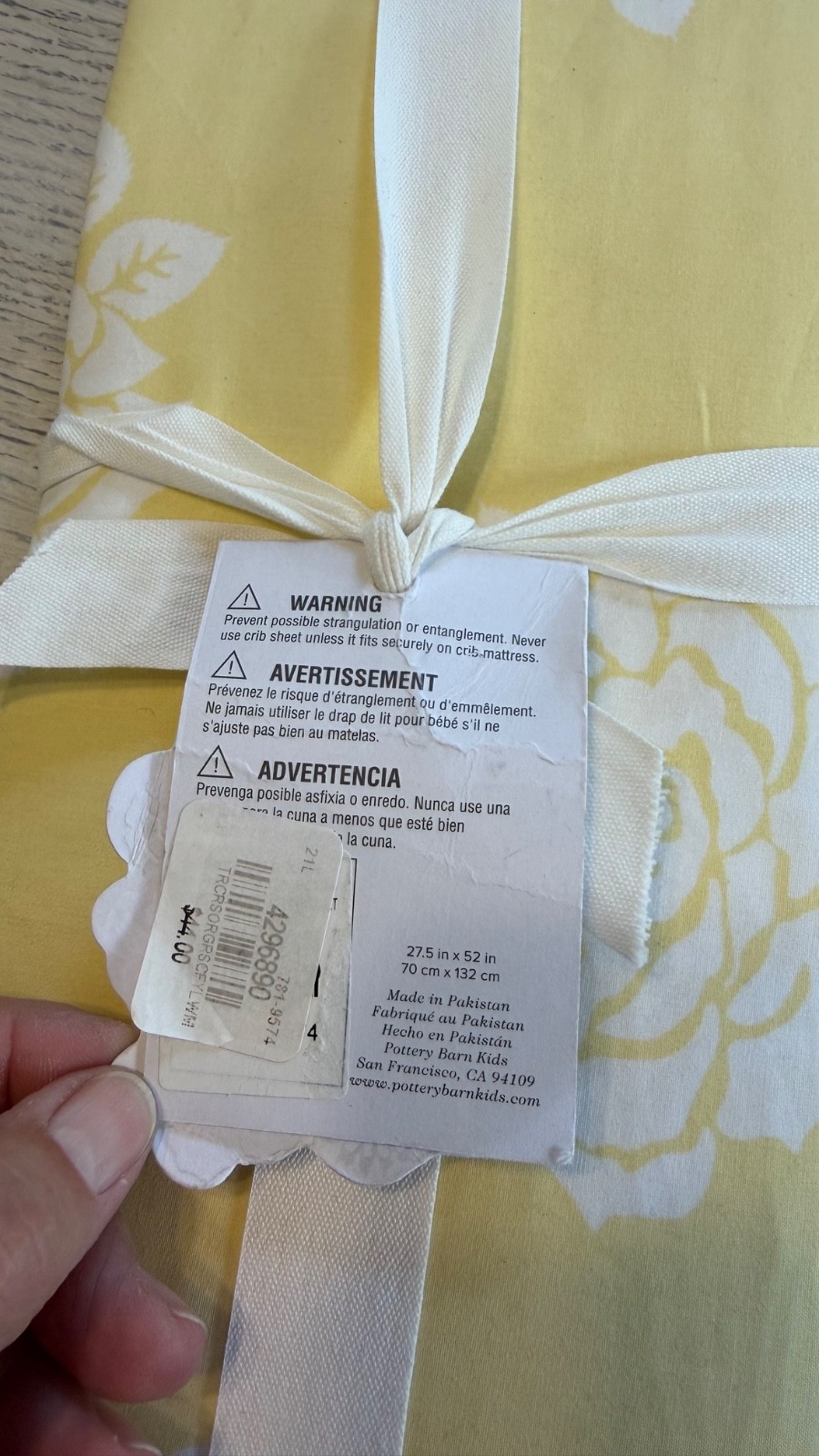 как выглядит POTTERY BARN TRACEY REESE HOPE FOR FLOWERS YELLOW ORGANIC FITTED CRIB SHEET NIP фото