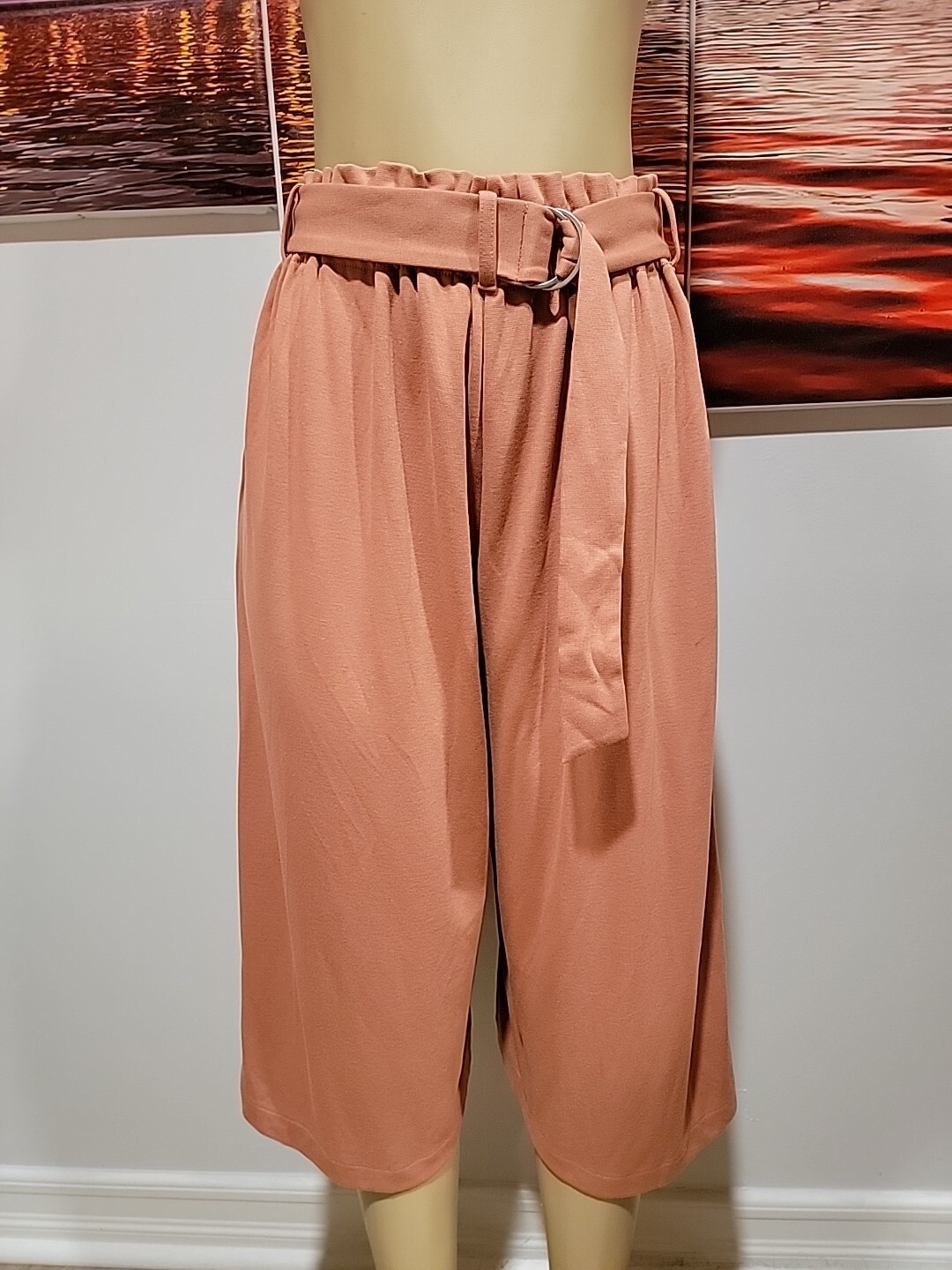 как выглядит Uniqlo High Waisted Paperbag Wide Crop Culottes Pants Women W/Pockets NWT F фото