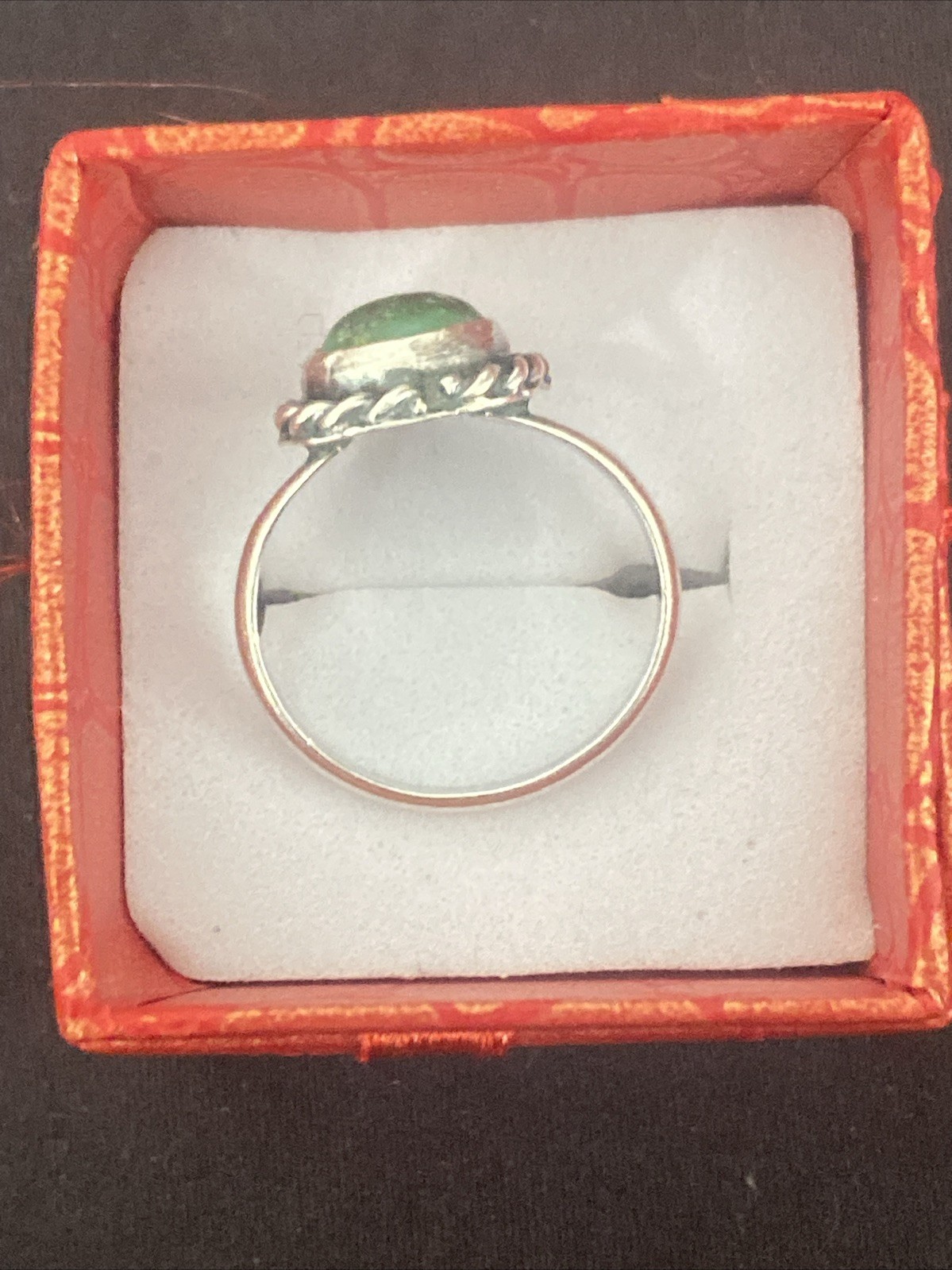 Vtg Rare Green Turquoise Rope Border Sterling Silver Ring Size 7 Navajo EUC
