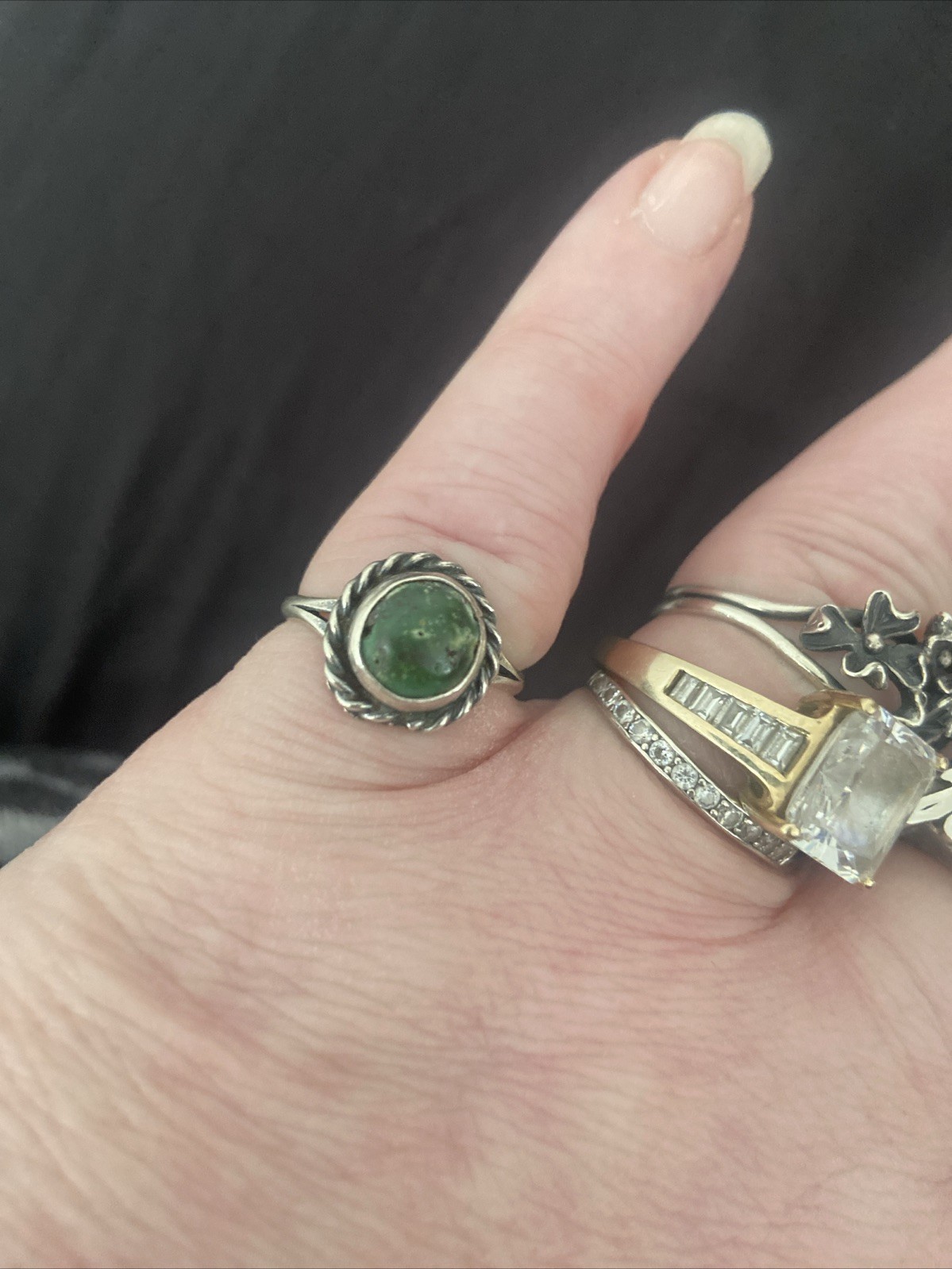 как выглядит Vtg Rare Green Turquoise Rope Border Sterling Silver Ring Size 7 Navajo EUC фото