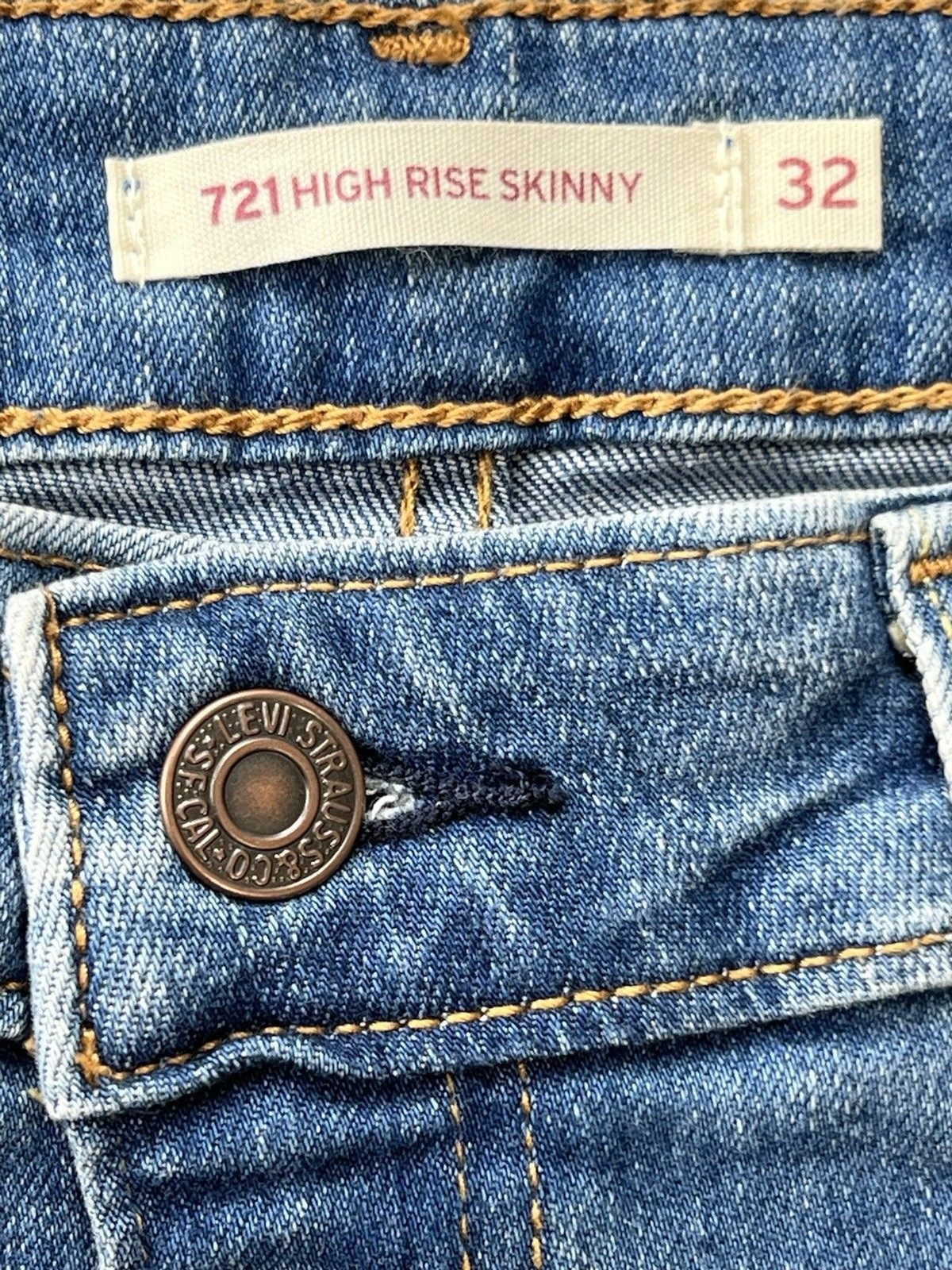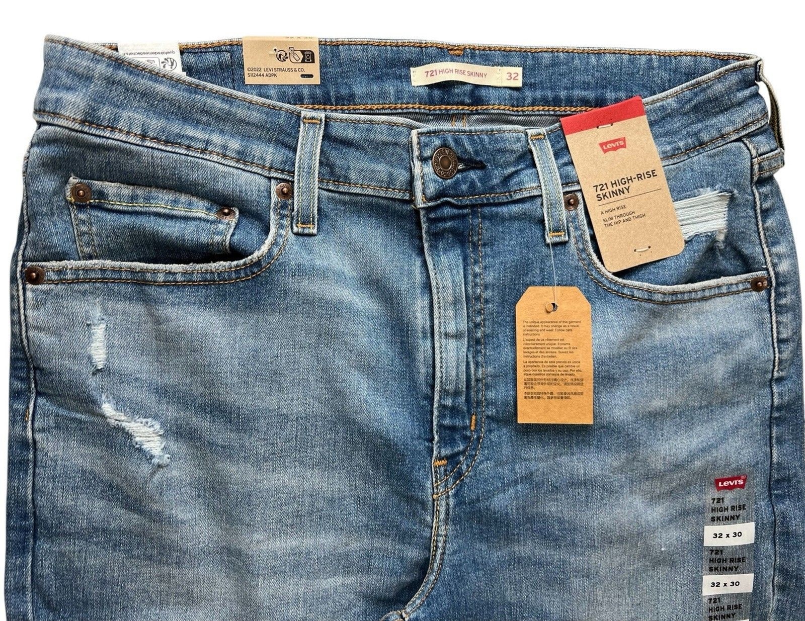 как выглядит Levis Women 721 High Rise Skinny Leg Distressed Stretch Jeans 32 x 30 Rare Tab фото