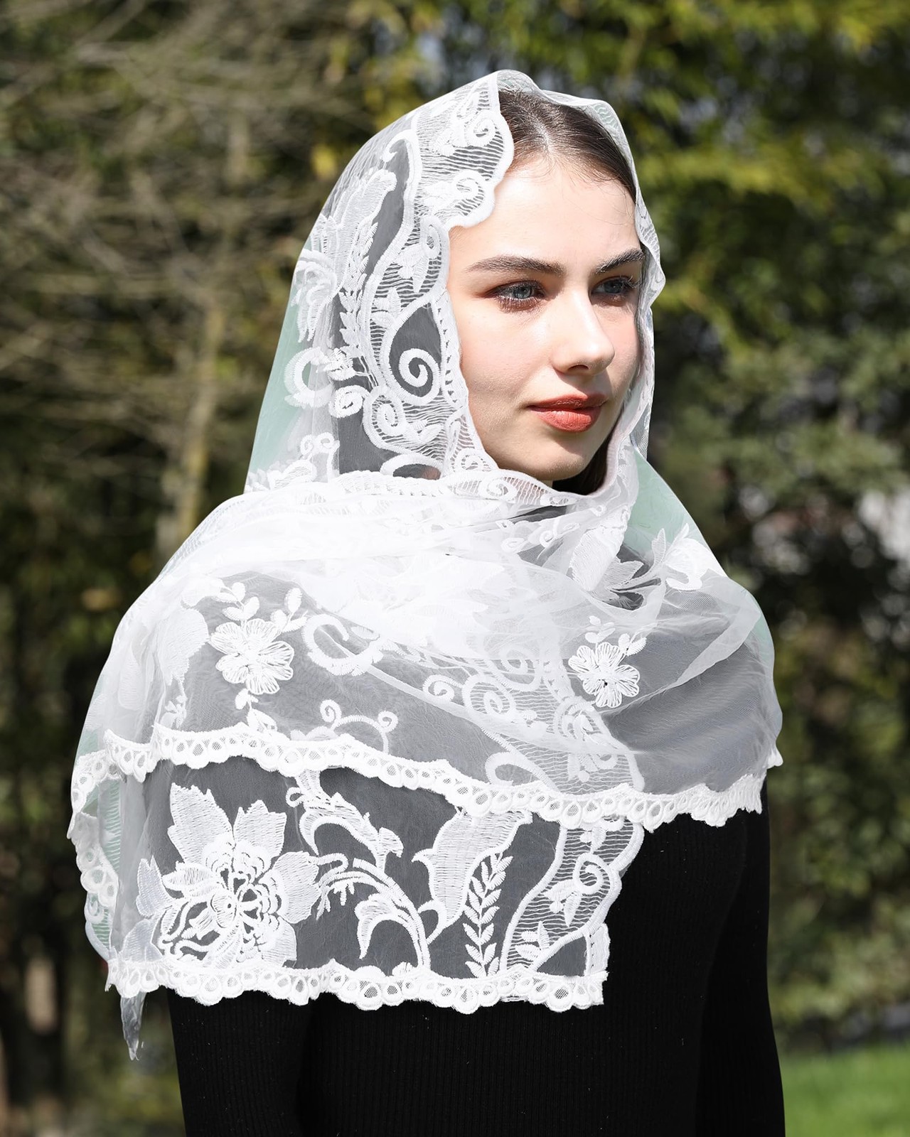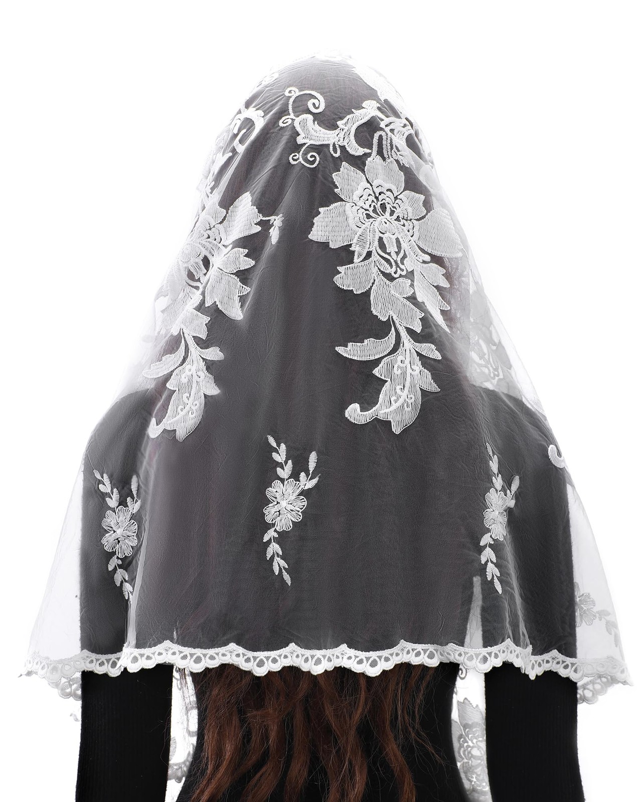 как выглядит Mantveil Lace Mantilla Chapel Veil: Long D Shaped White 57 22 inches, фото