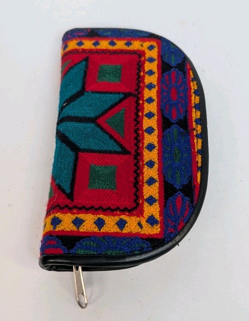 как выглядит Womens Vintage Hand Woven Yarn Art Geometric Design Leather Suede Zip Case фото