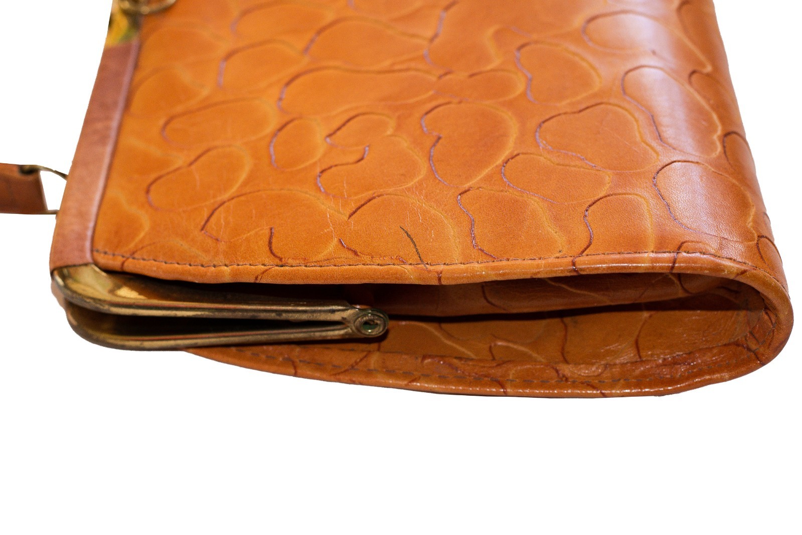 как выглядит Vintage USSR 80s Caramel Brown Purse, Short Handle, Embossed,top handle handbag фото