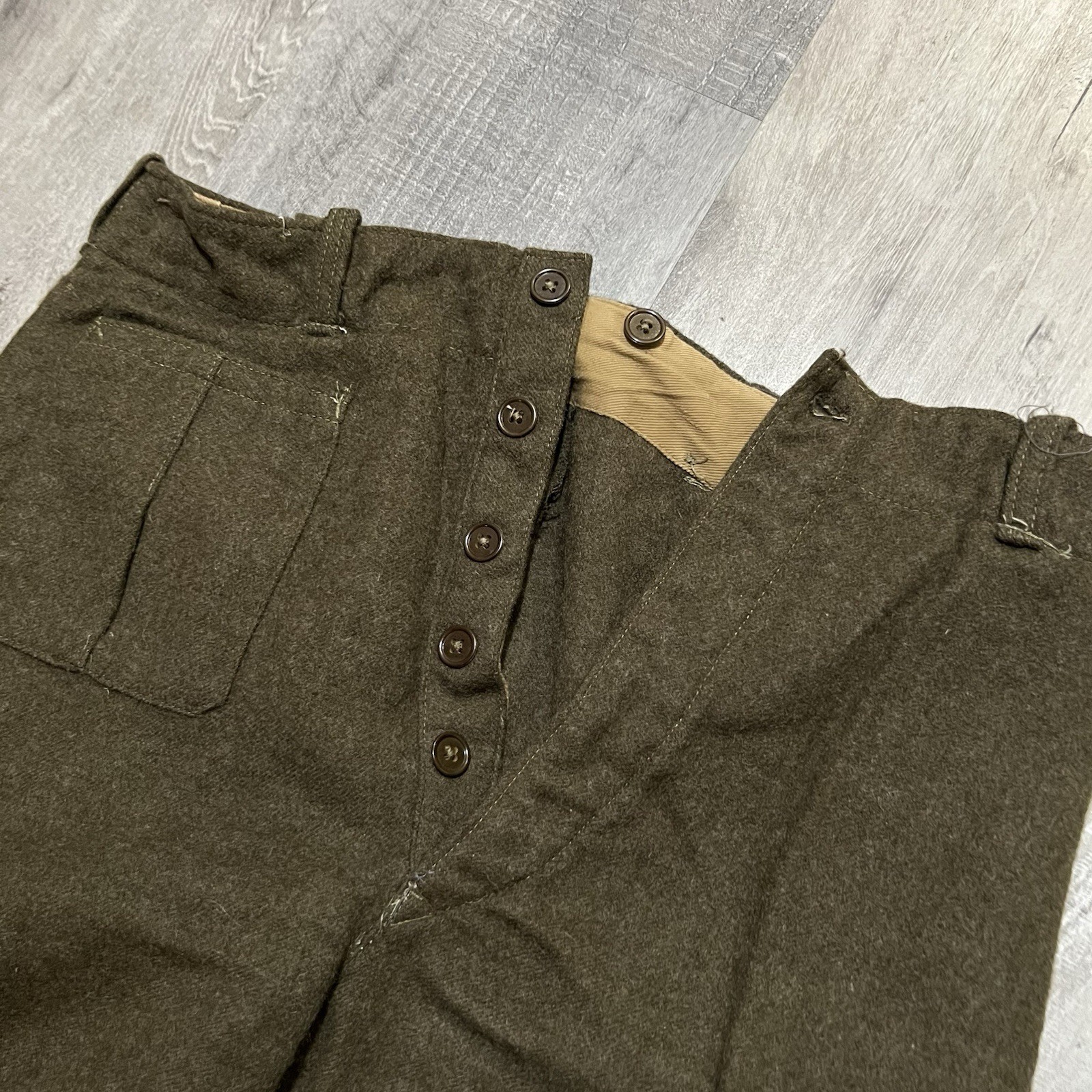 как выглядит VTG 1950s Wool Belgium Military Trousers Baggy Army Pants Olive Drab Mens 33 фото