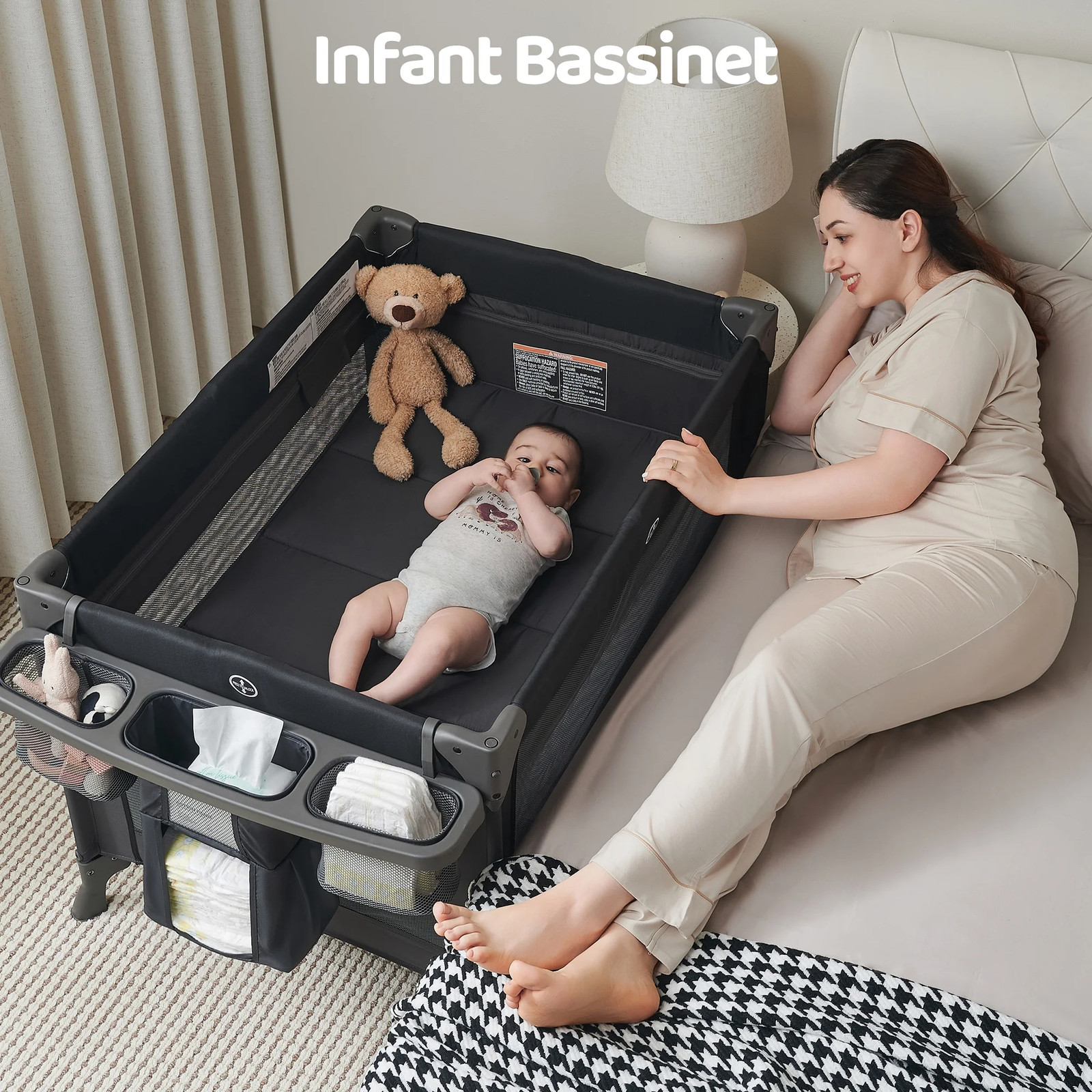 4-in-1 Baby Playard with Bassinet Changing Table Newborn to Toddler