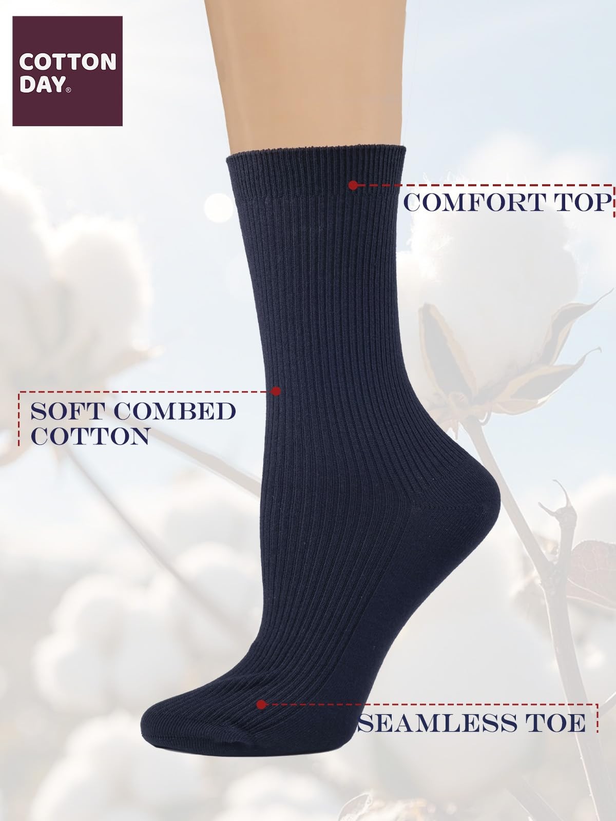 COTTON DAY Women's Combed Cotton Fine Ribbed Small-Medium, Dark Navy Blue